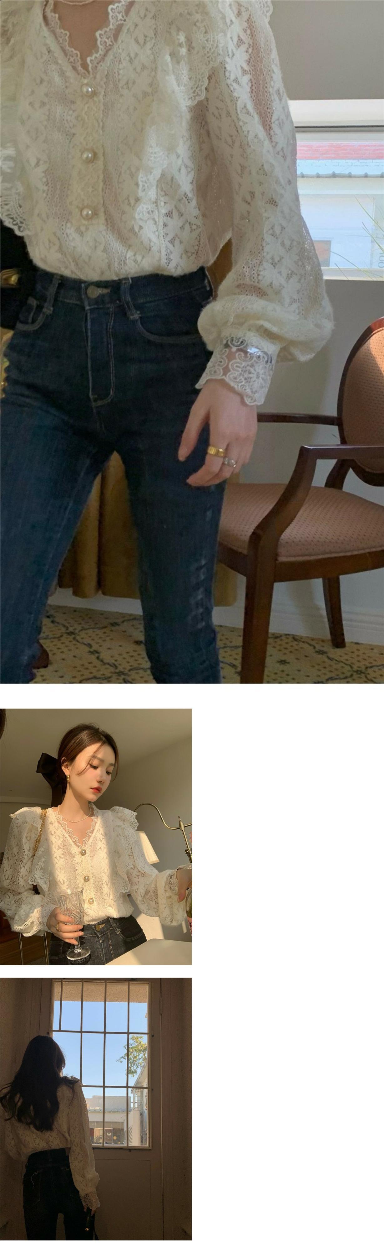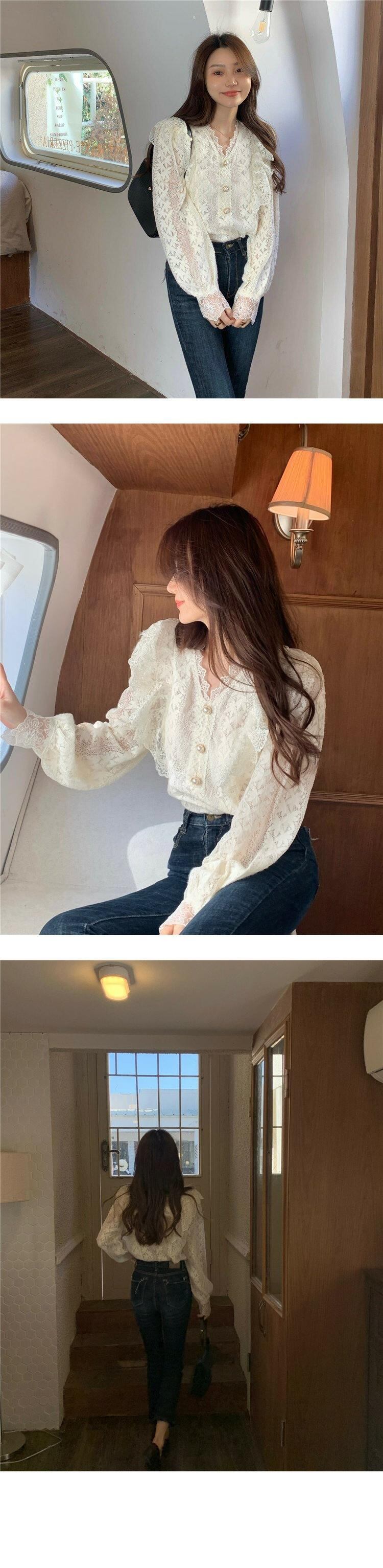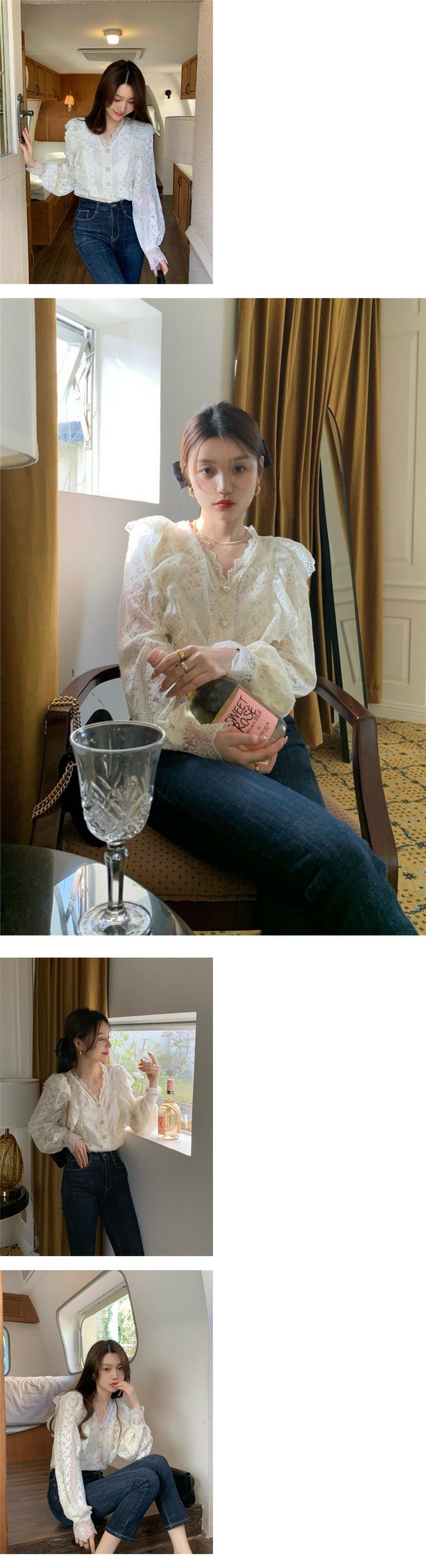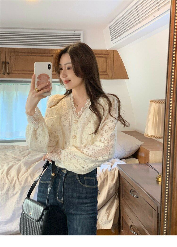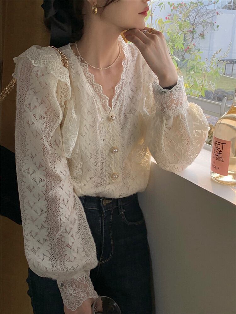 韓国ファッションスタイルNEWルーズレースシャツ シフォンスプリング秋物ゆったりトップス 春物 オータム MONROE58365204232