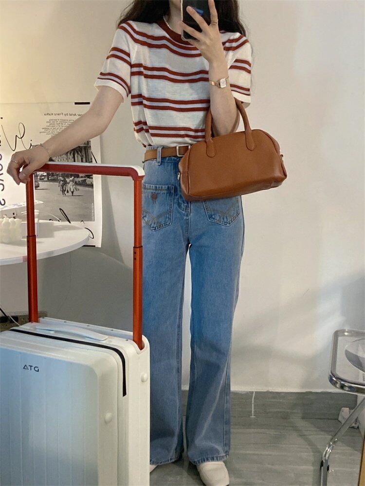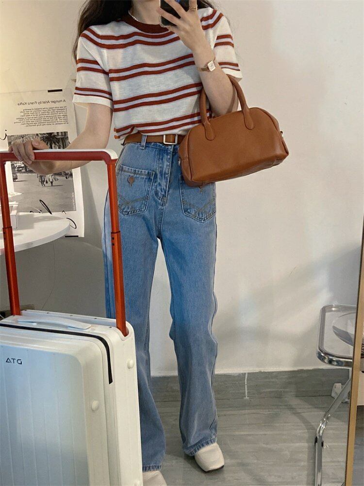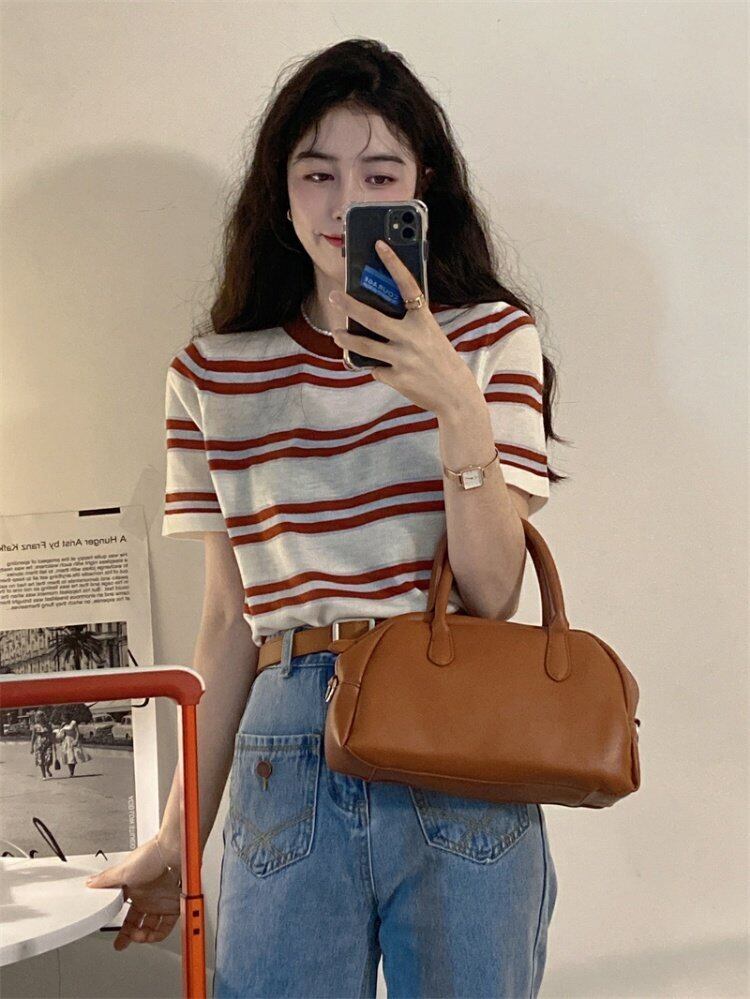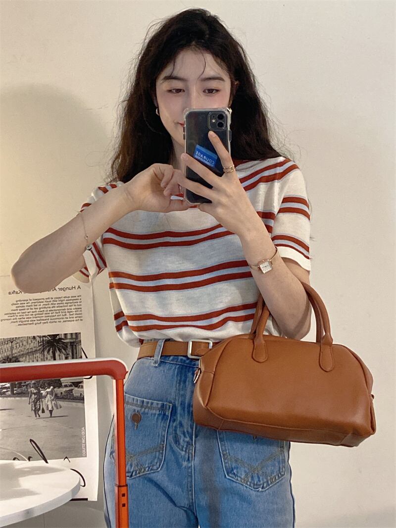 韓国ファッションストライプTシャツシャツ スプリングスリムラウンドネックゆったり 春物 Oネック スタイル MONROE28994598456
