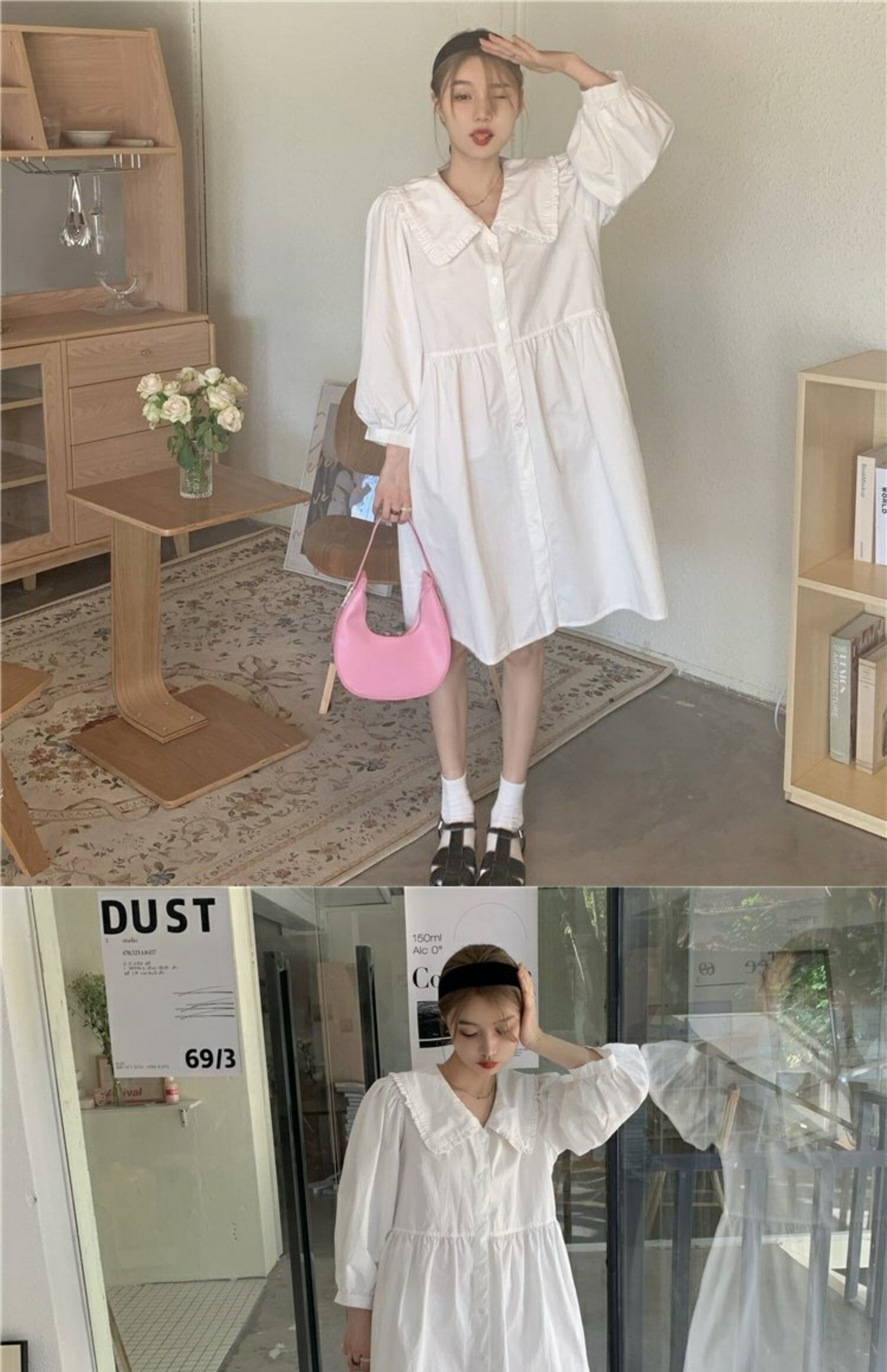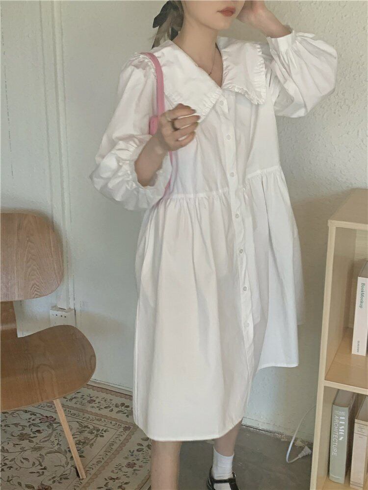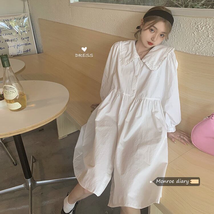 ホワイトロングワンピーススプリングルーズ薄手スカート 大人ガーリー スウィート キュート カジュアル 春物 長袖 MONROE20688741799