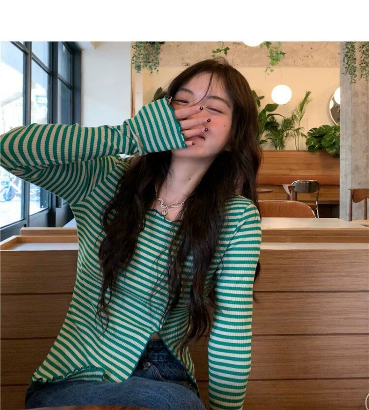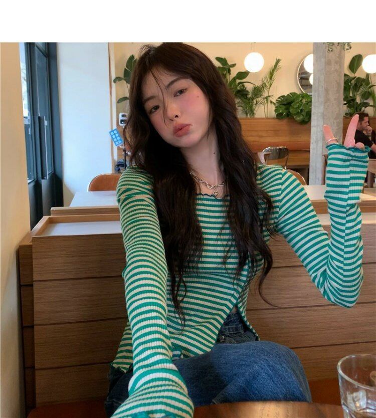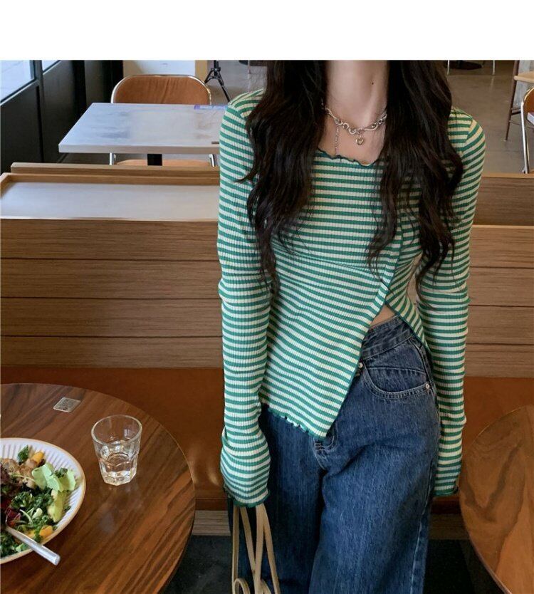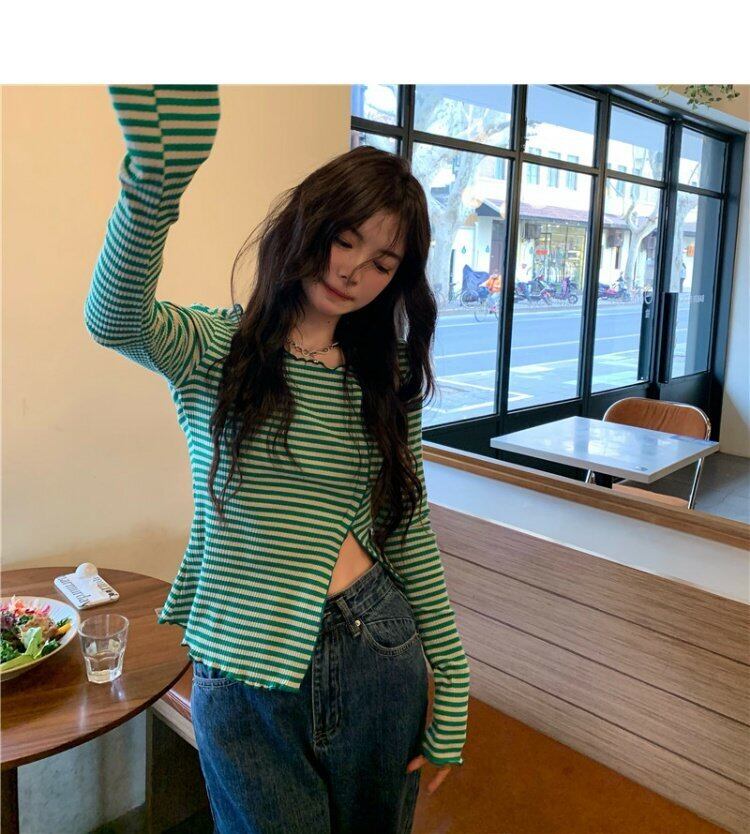 ストライプTシャツシャツ スプリングスリムトップス ゆったり ロング 春物 長袖 MONROE89972593128