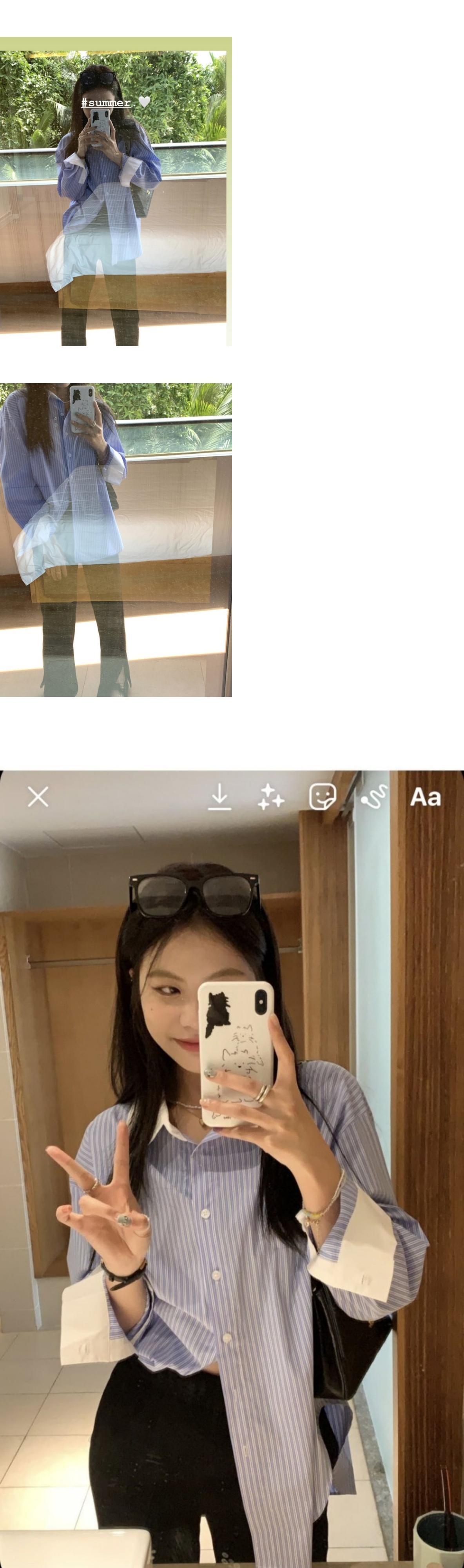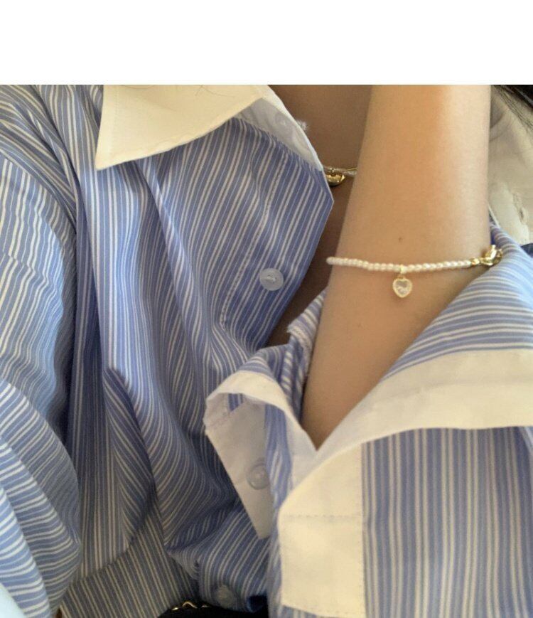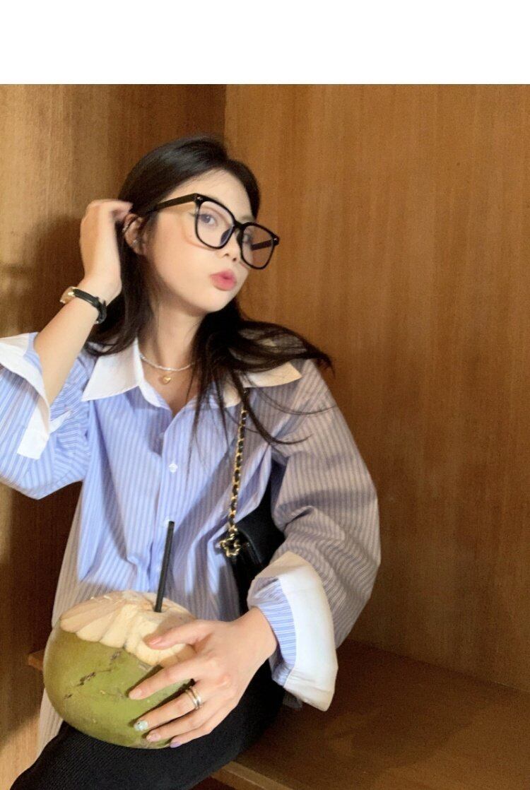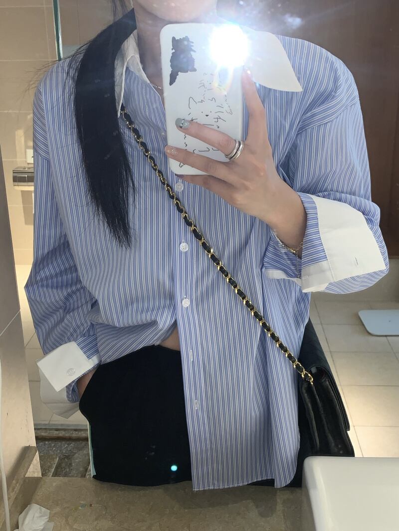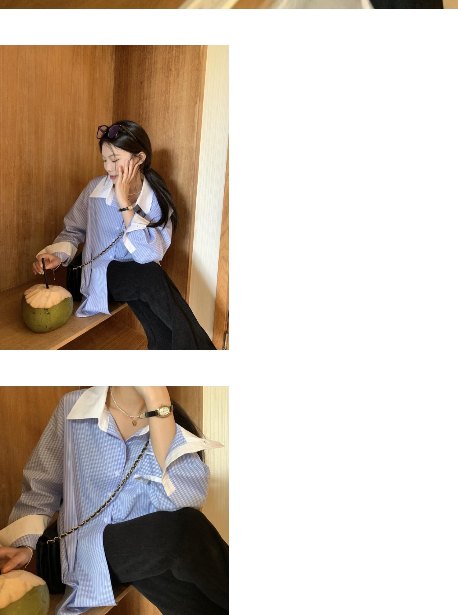 韓国ファッションブルーホワイトストライプシャツ スプリングルーズ薄手トップス ロング 長袖 春物 スタイル MONROE49455718386