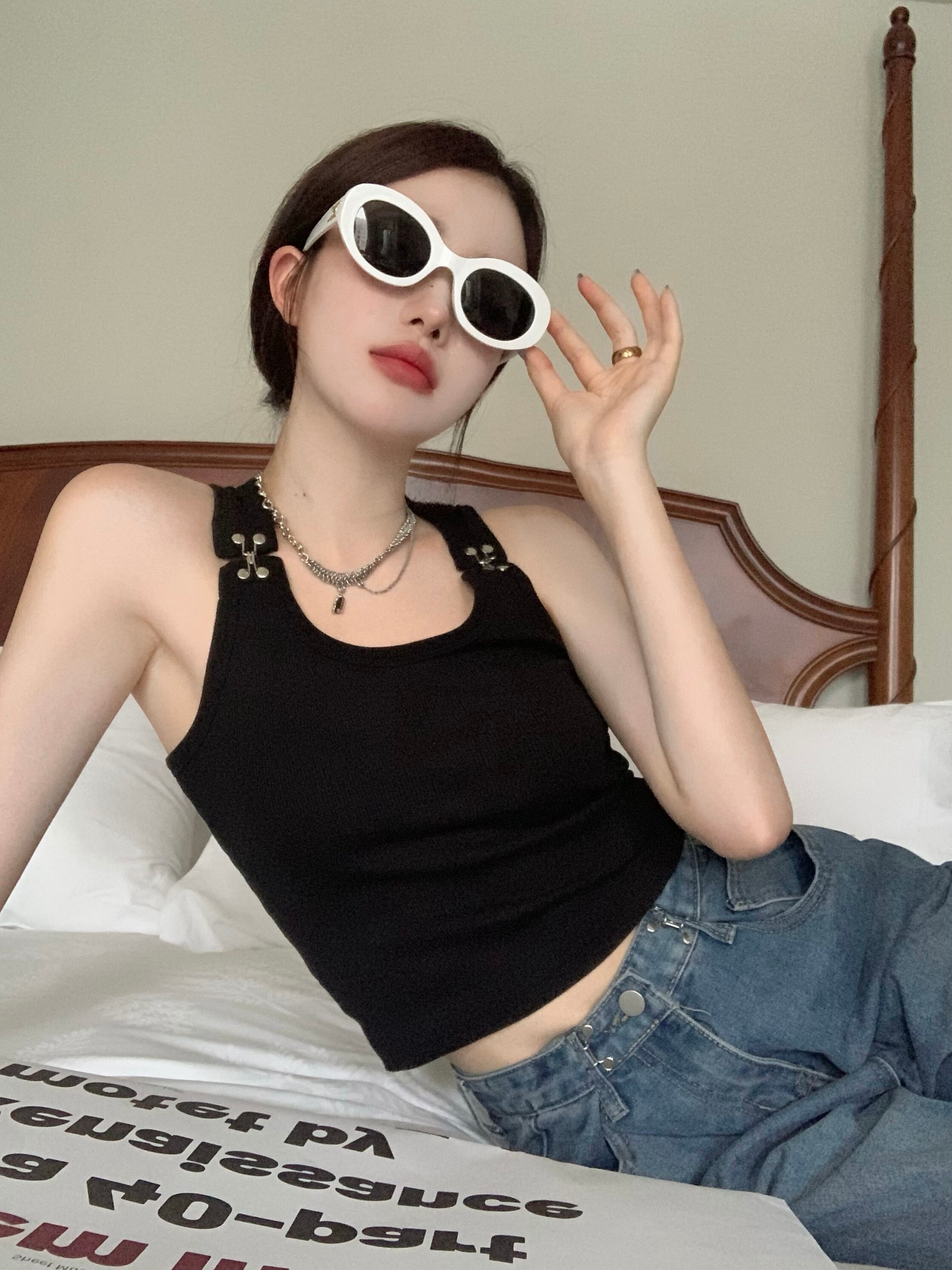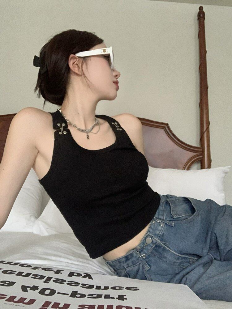 韓国ファッションレディースブラックスリムフィット夏服ショートトップス ストリート 夏物 スタイル NEW MONROE63906937825