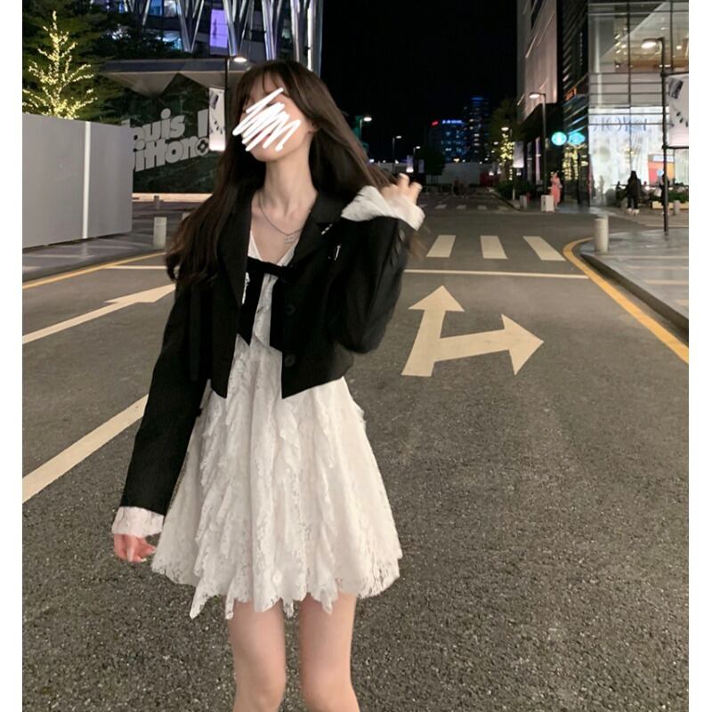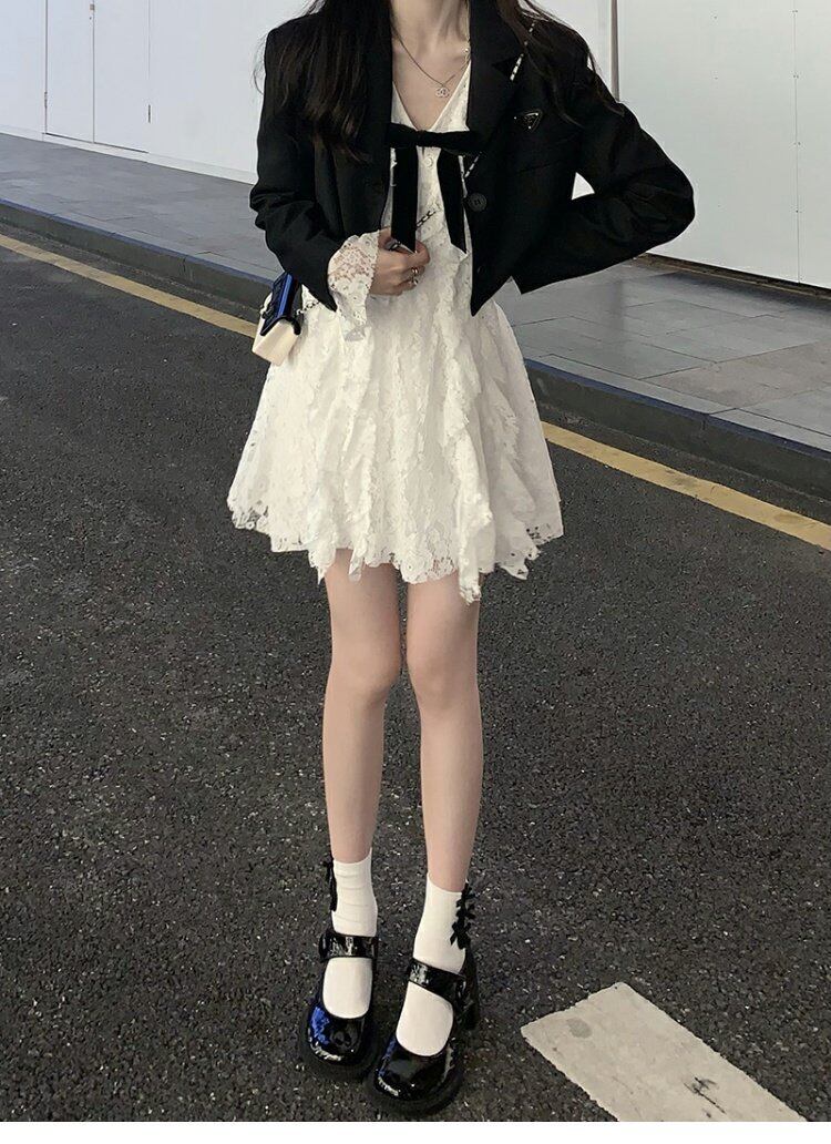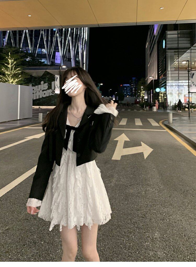 ホワイトワンピーススプリングレースショートスカート ロング 大人ガーリー スウィート キュート カジュアル 春物 長袖 MONROE27408830003