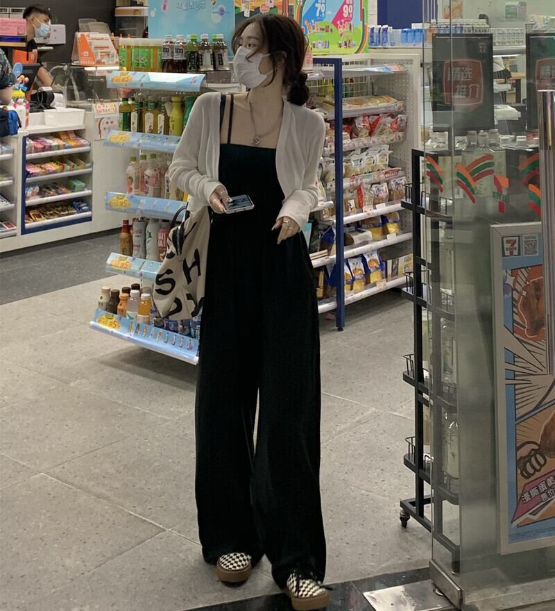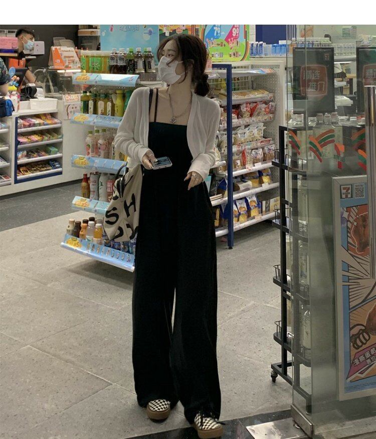 韓国ファッションホワイトショートニットセーター 夏服カーディガントップス ジャンプスーツ オールインワン ロング 夏物 スタイル 長袖 MONROE20573629135
