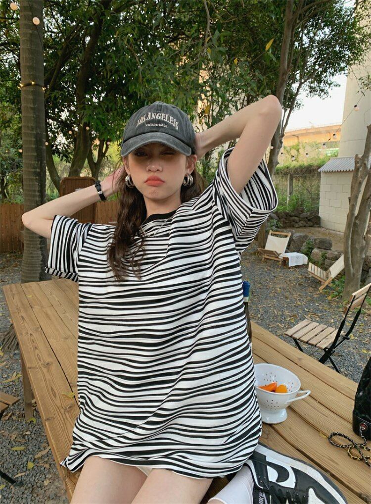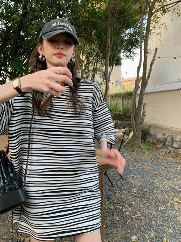 ストライプTシャツシャツ スプリングルーズ薄手トップス ゆったり 春物 MONROE38975673165