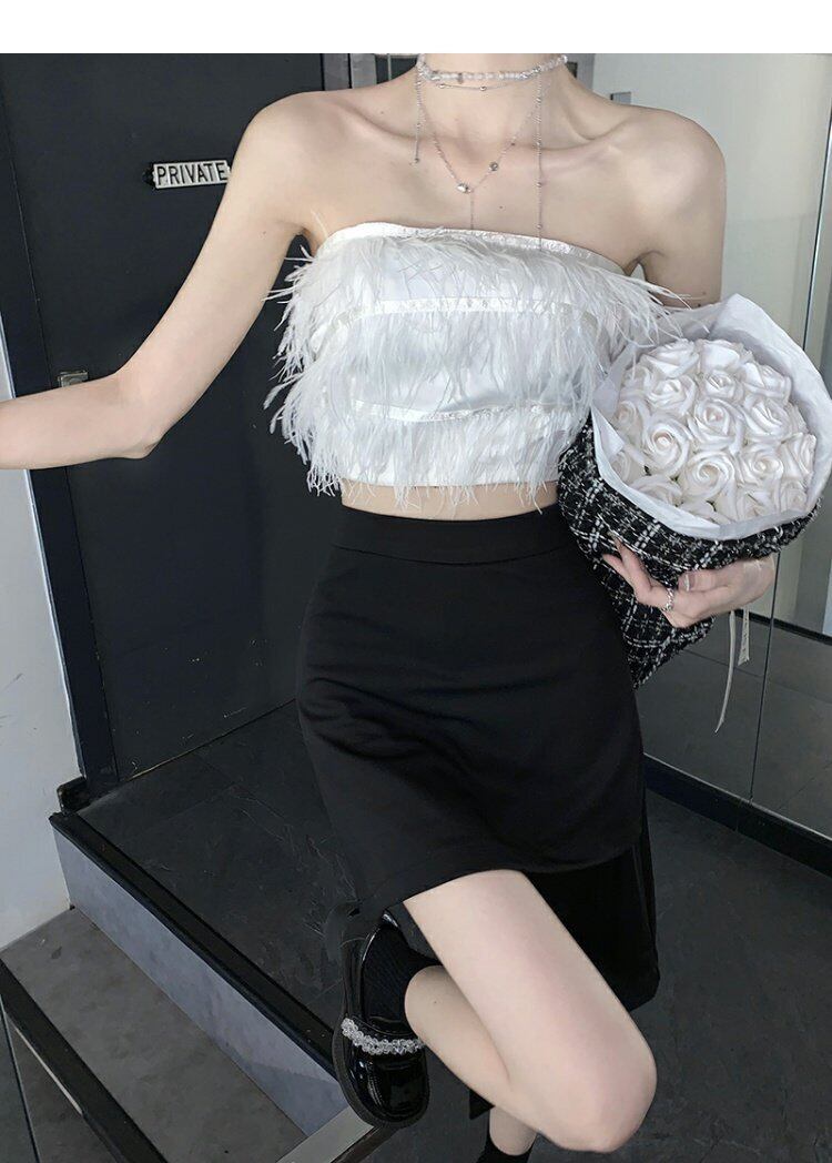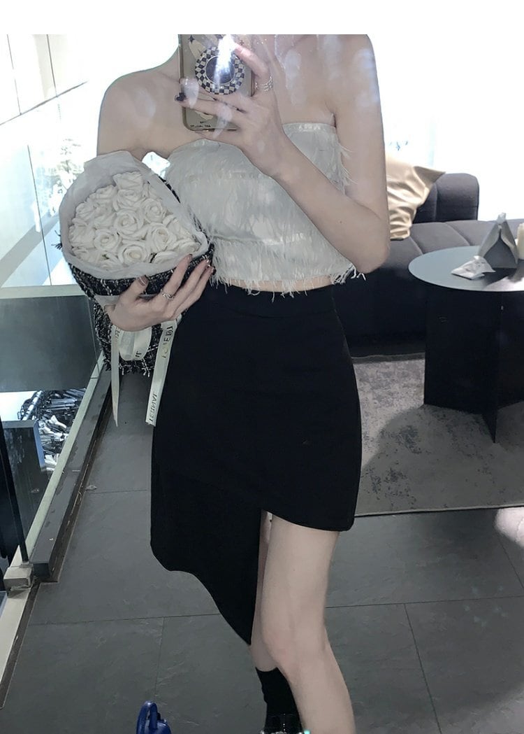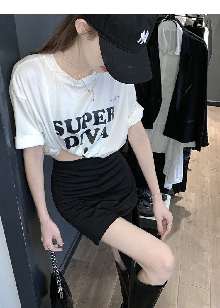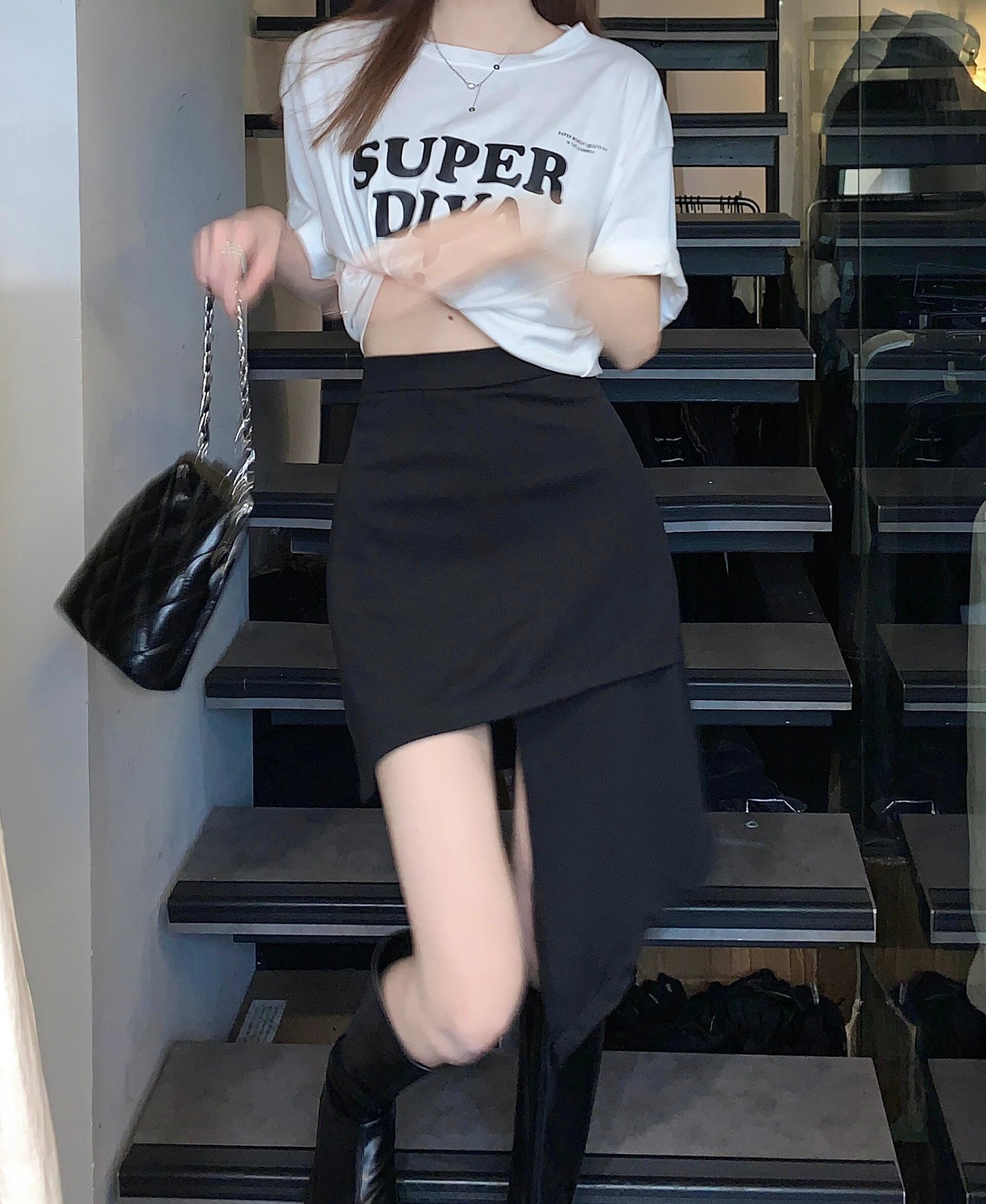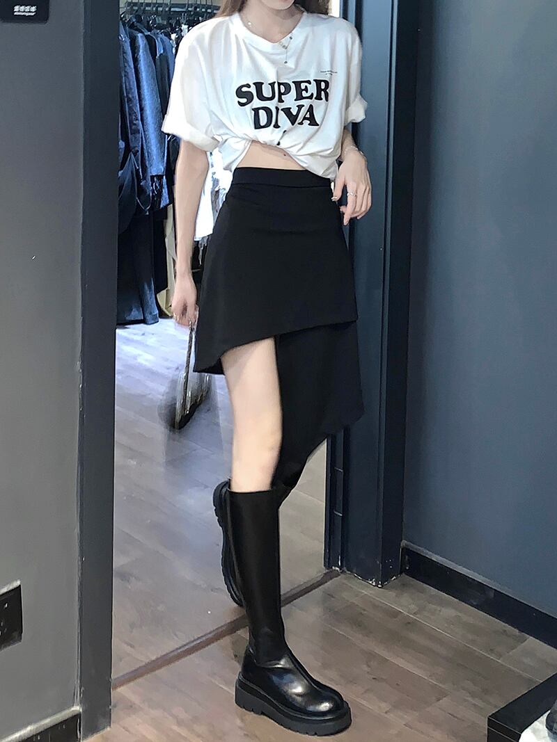 スカート ブラックハイウェストウェストスリム夏服Aライン ストリート 夏物 ウエスト MONROE30683314201
