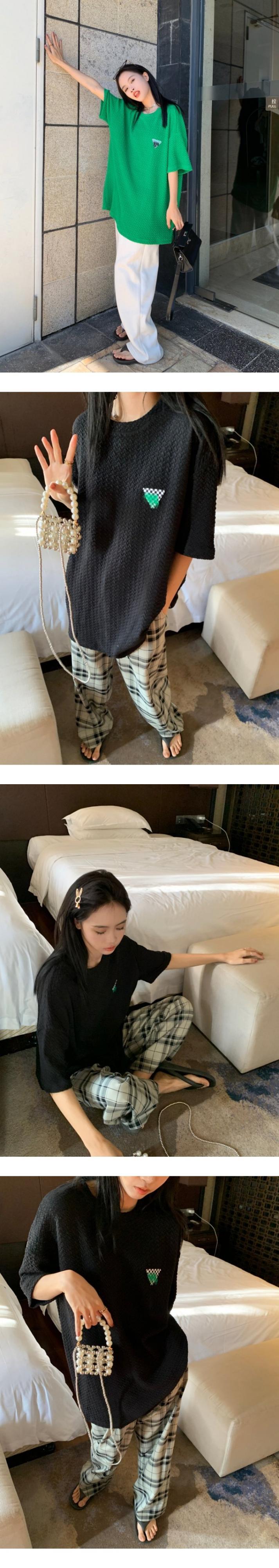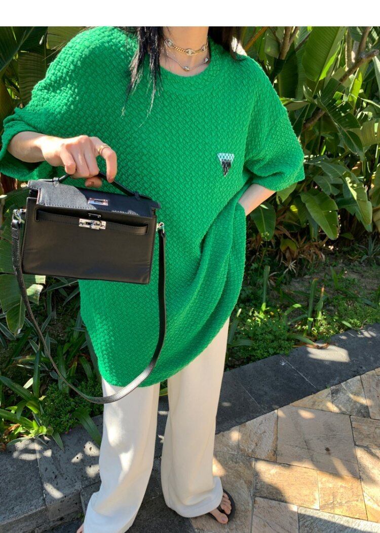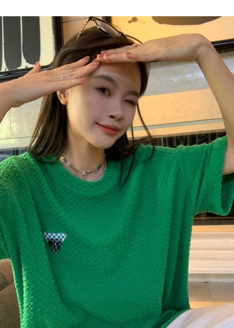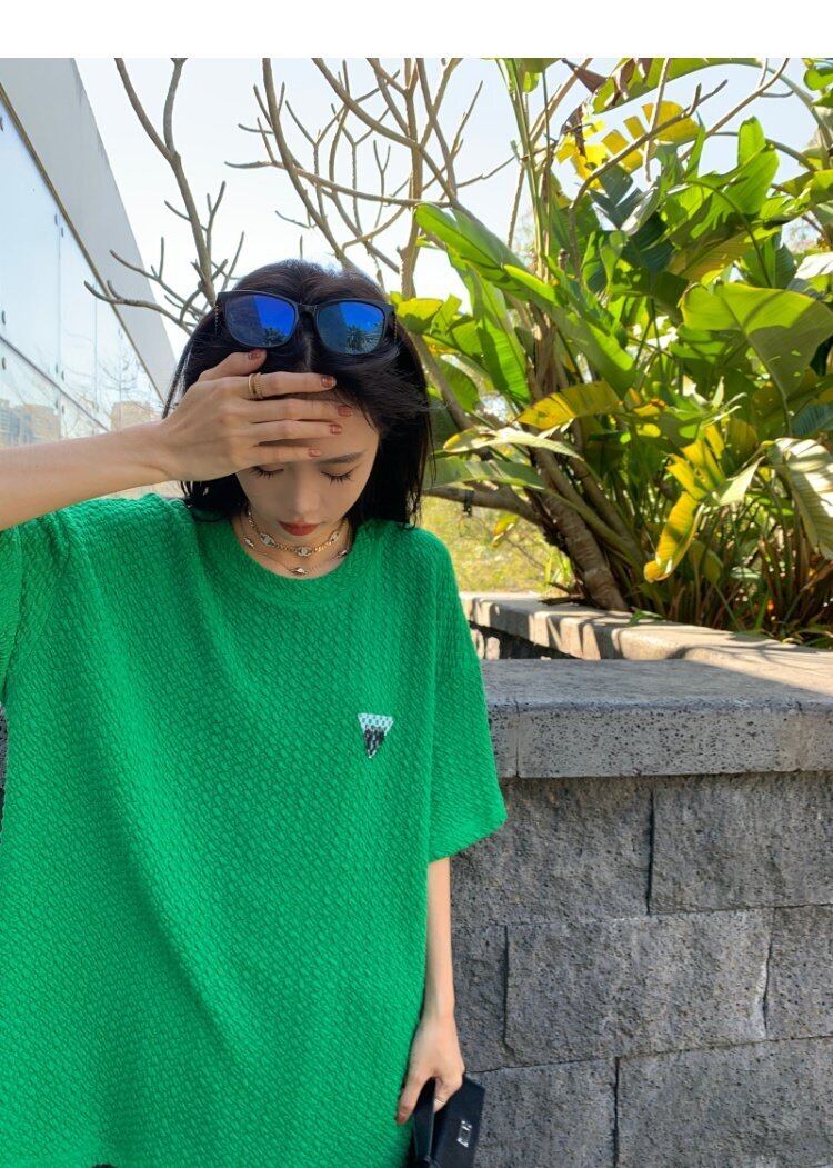Tシャツルーズラウンドネックトップス スプリングプリーツ 春物 Oネック ミドル丈 MONROE95807898688