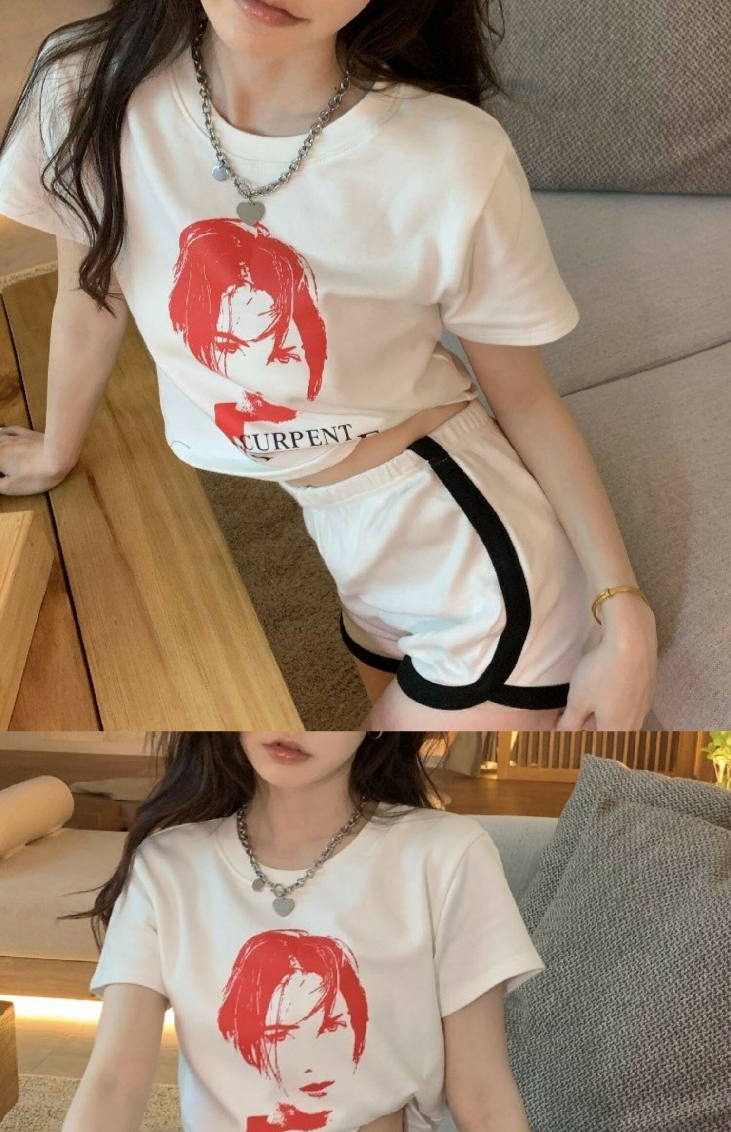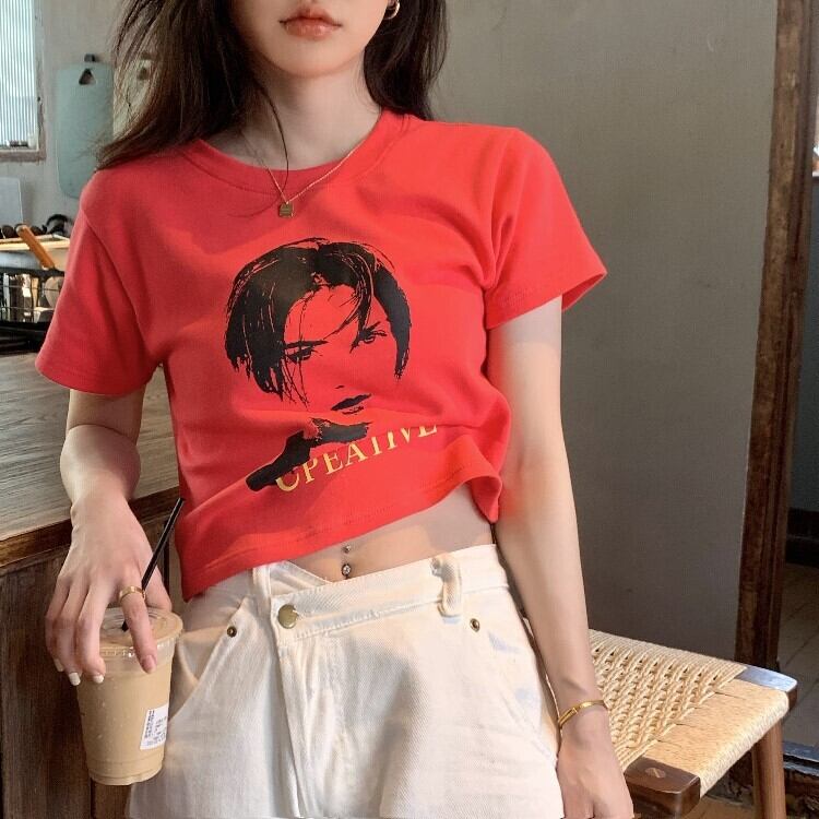 スタンダードTシャツシャツ ルーズ薄手トップス 夏服プリントゆったりラウンドネック レトロ ストリート 夏物 Oネック MONROE87591051958