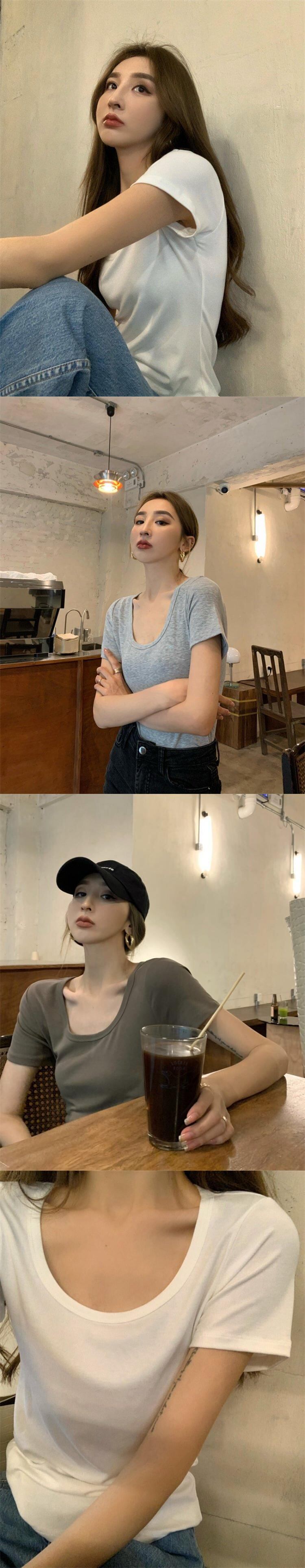 ソリッド カラースリムTシャツシャツ ゆったり夏服グレーNEWトップス 夏物 ソリッドカラー MONROE75246747519