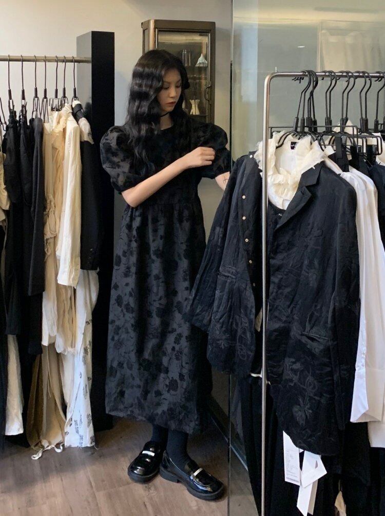 スタンダードフローラルスリーブスカート 夏服ウェスト薄手半袖ワンピースロング ショート レトロ ハーフスリーブ 夏物 花柄 ウエスト MONROE98879632880