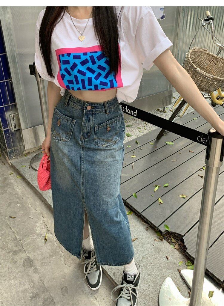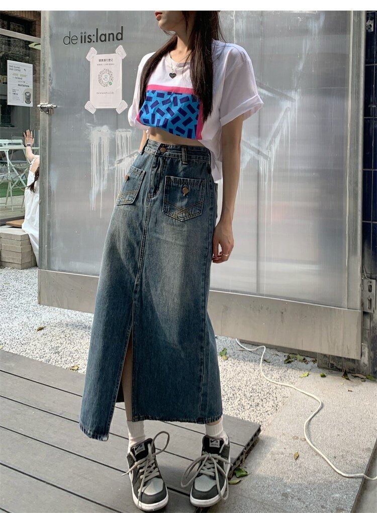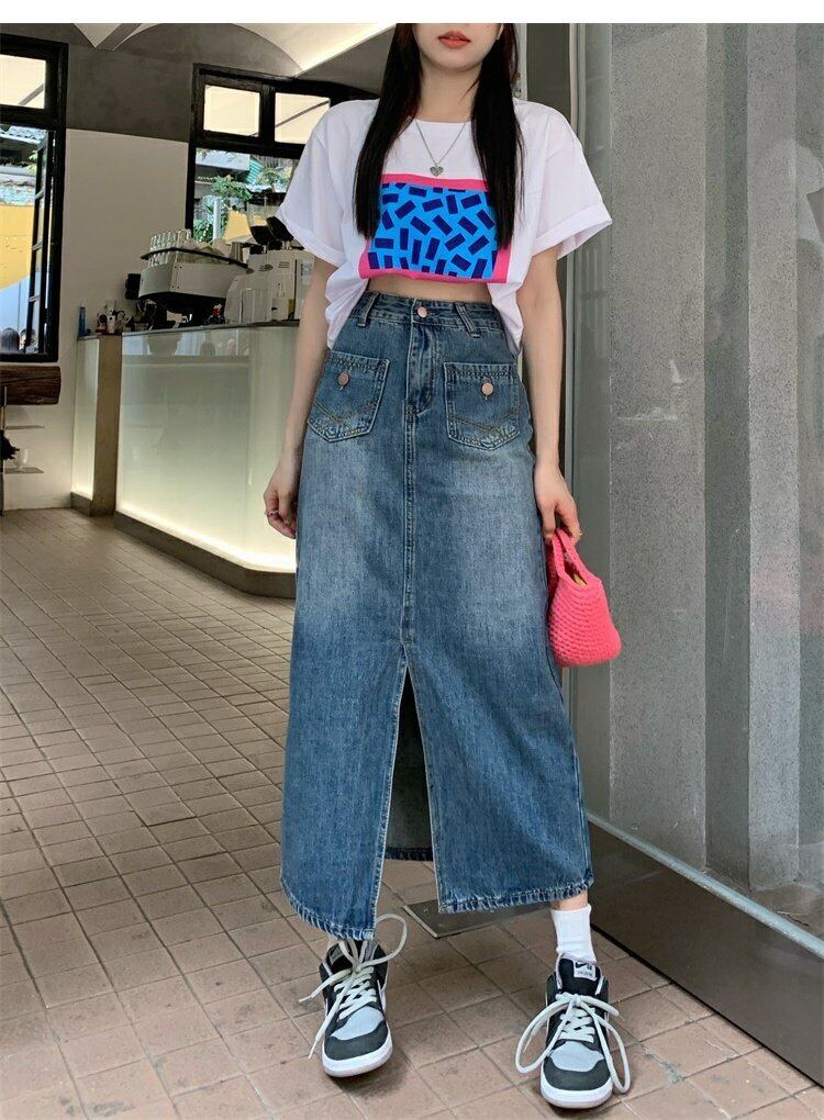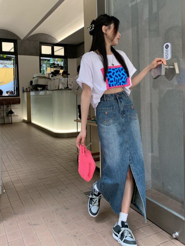 ウェストスリムスカート 夏服スタイルスリットロングAライン韓国ファッション 夏物 ウエスト MONROE19723042234