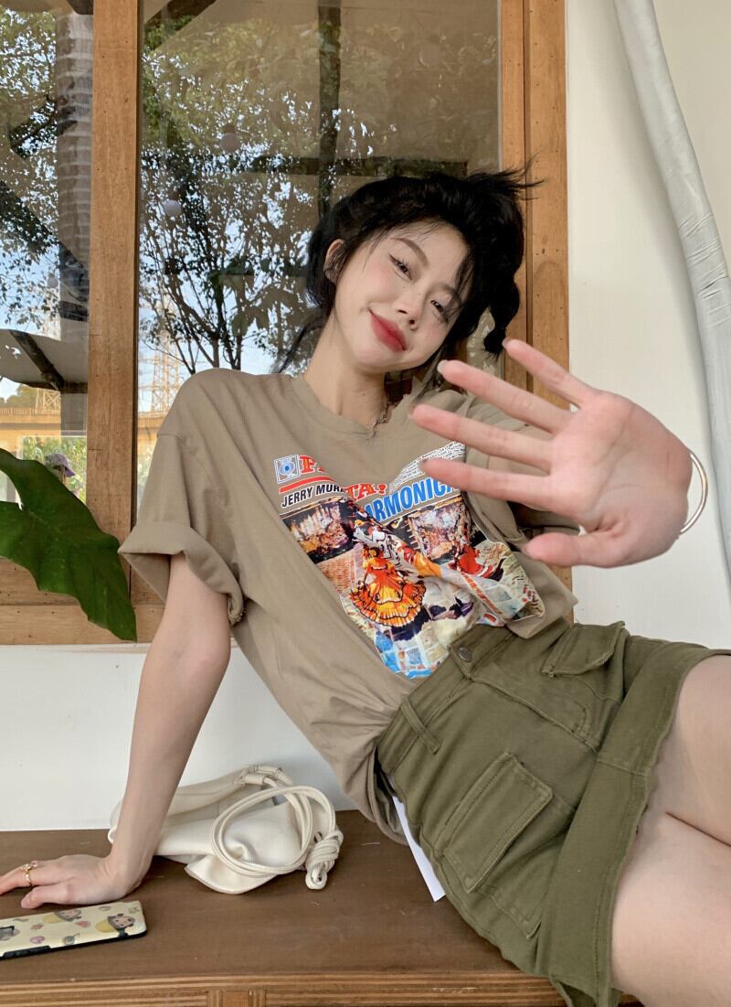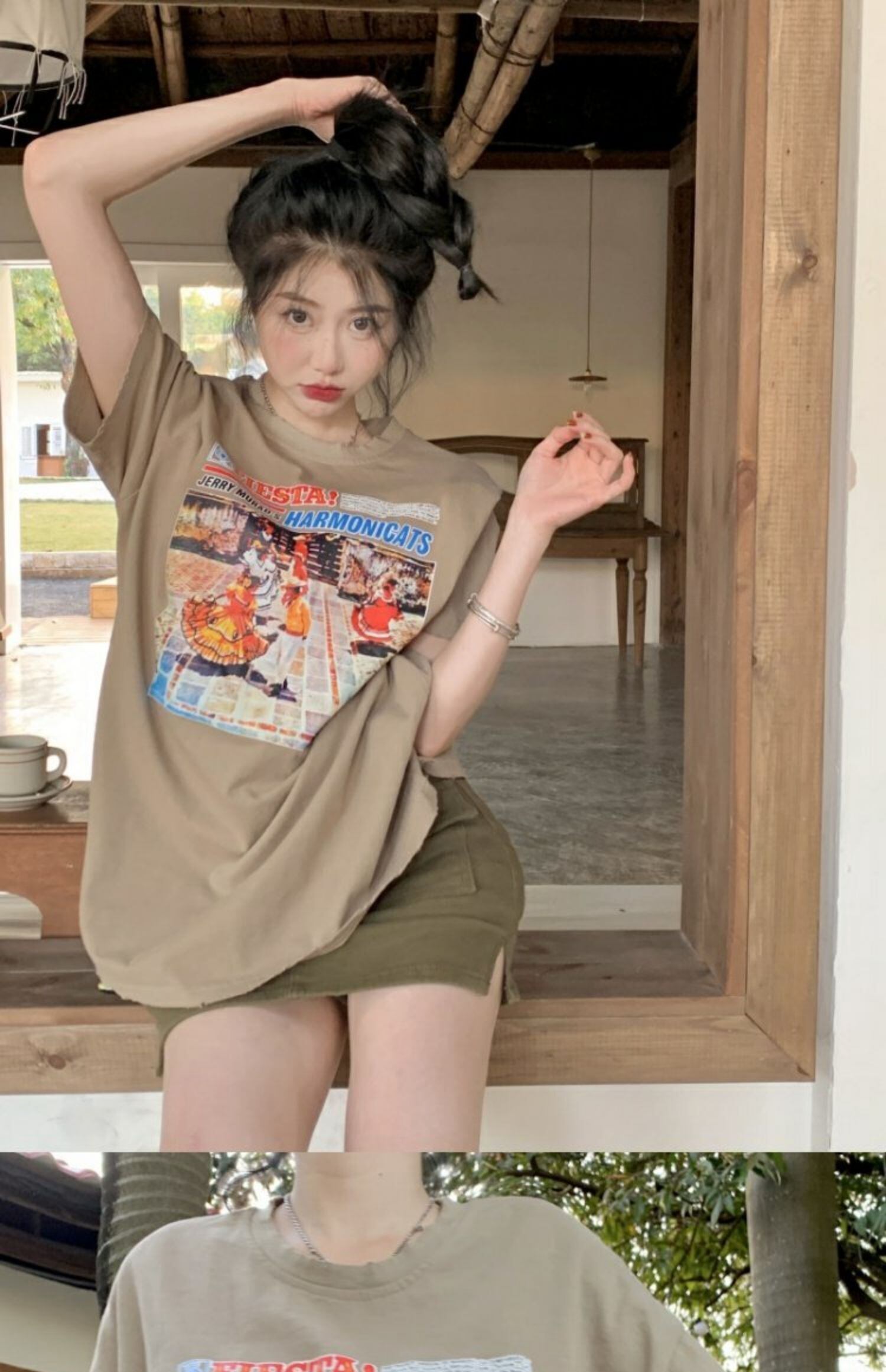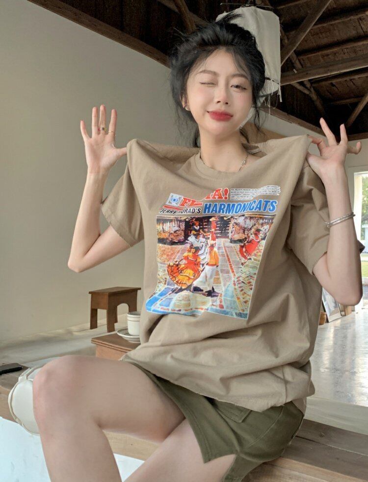 スタンダードTシャツシャツ ルーズゆったりスプリングトップス レトロ 春物 ミドル丈 MONROE76296702468