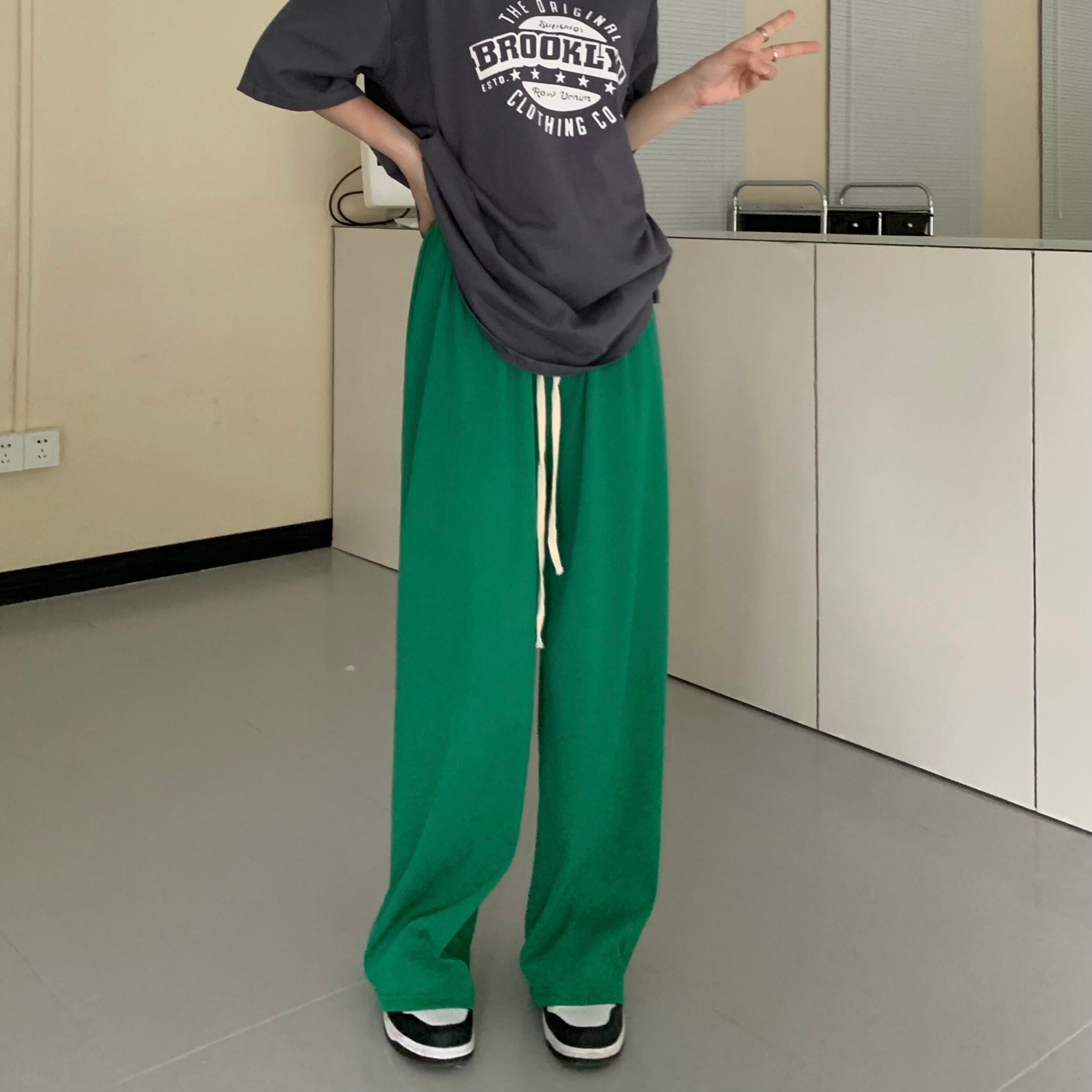 ウェストギャザーパンツ スプリングルーズワイドレッグ 春物 ワイドパンツ ウエスト MONROE33861970596
