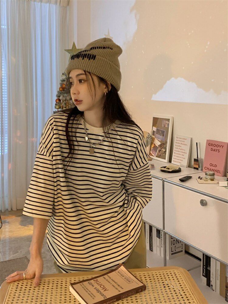 ストライプスタイルTシャツシャツ ゆったりスプリングカジュアルトップス 春物 MONROE56482630800