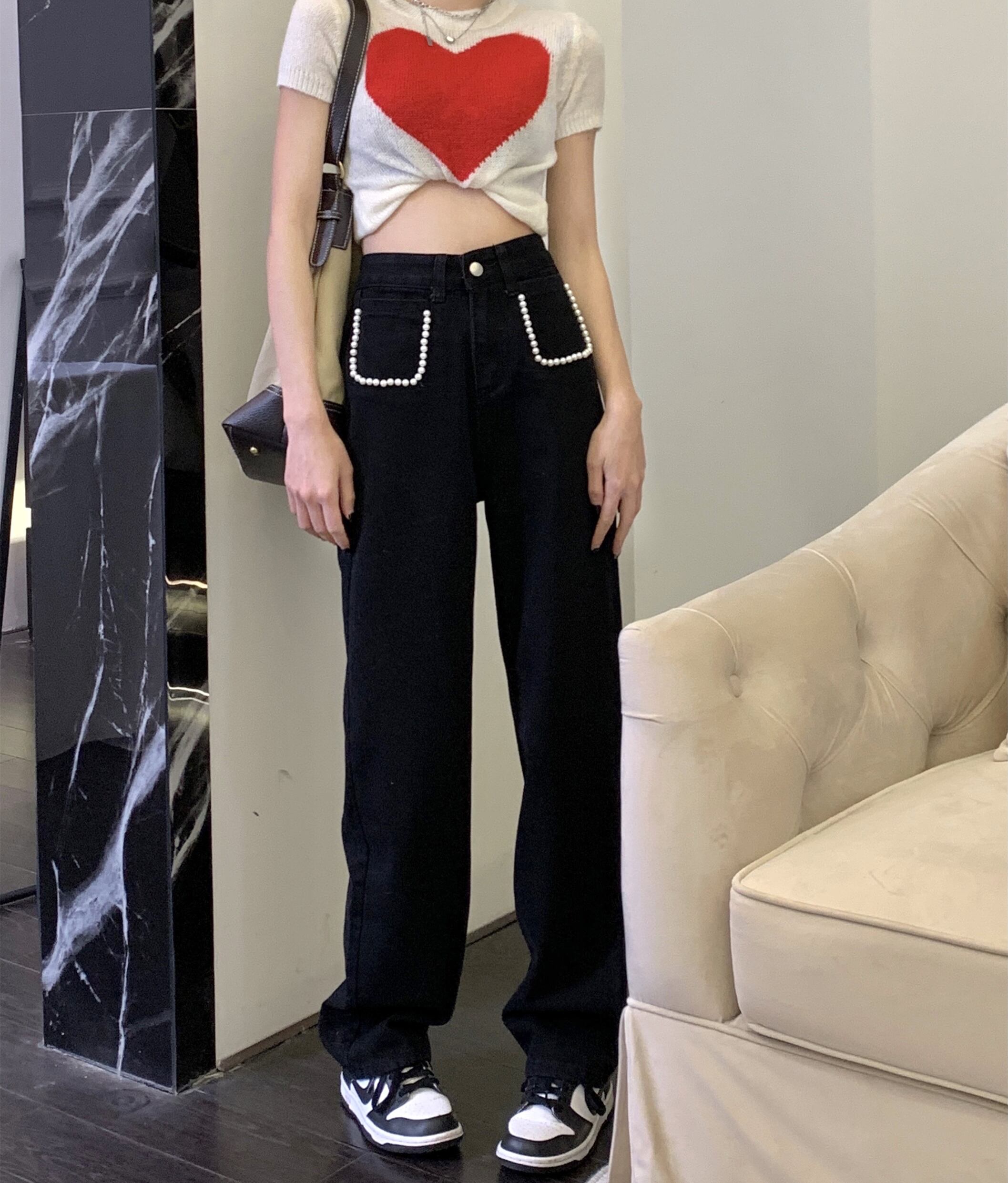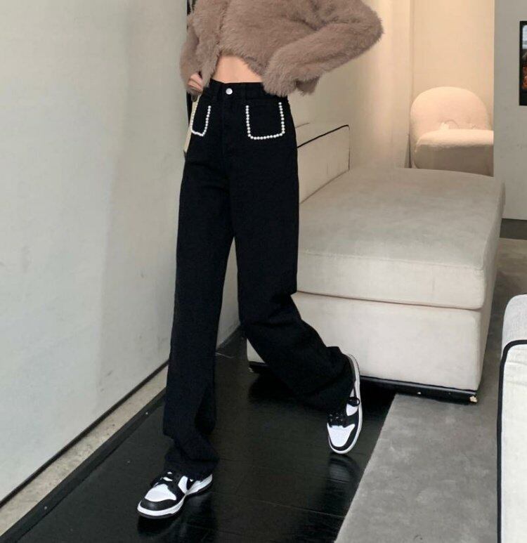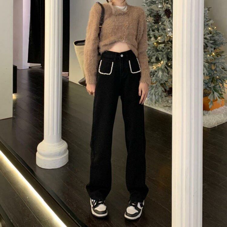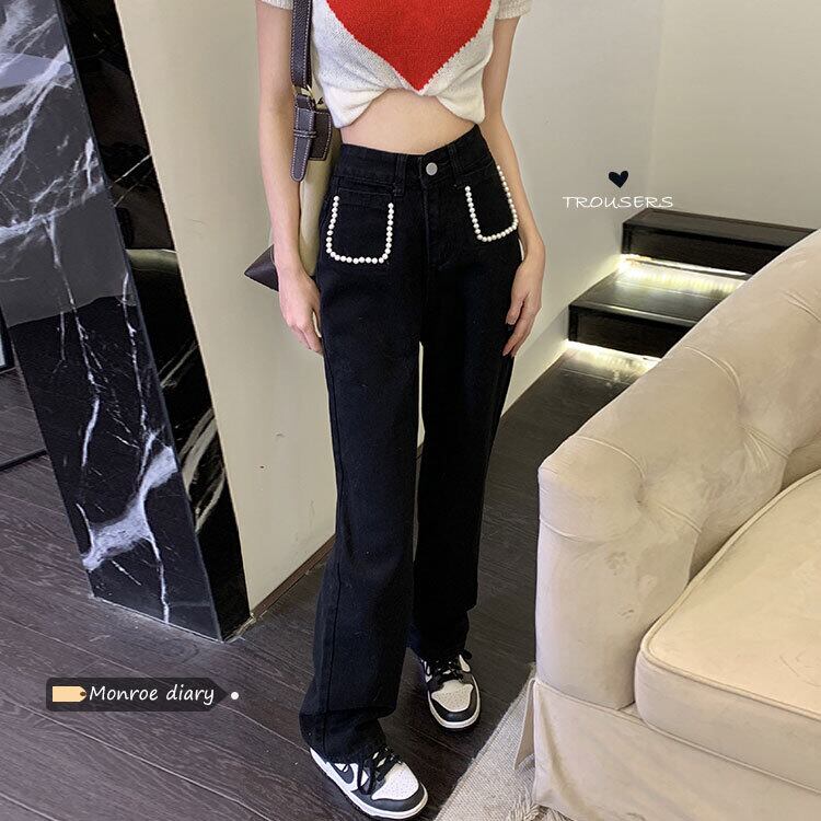 ブラックジーンズ ルーズスプリングハイウェストウェストパンツ 春物 ウエスト MONROE3563597663