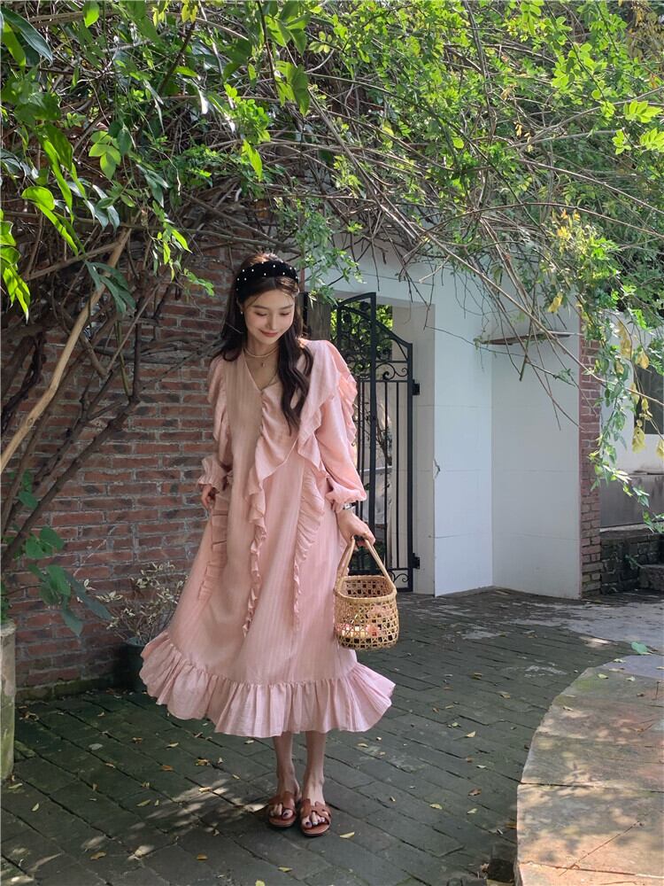 ワンピーススプリングロングスカート ピンク 春物 MONROE67045838177