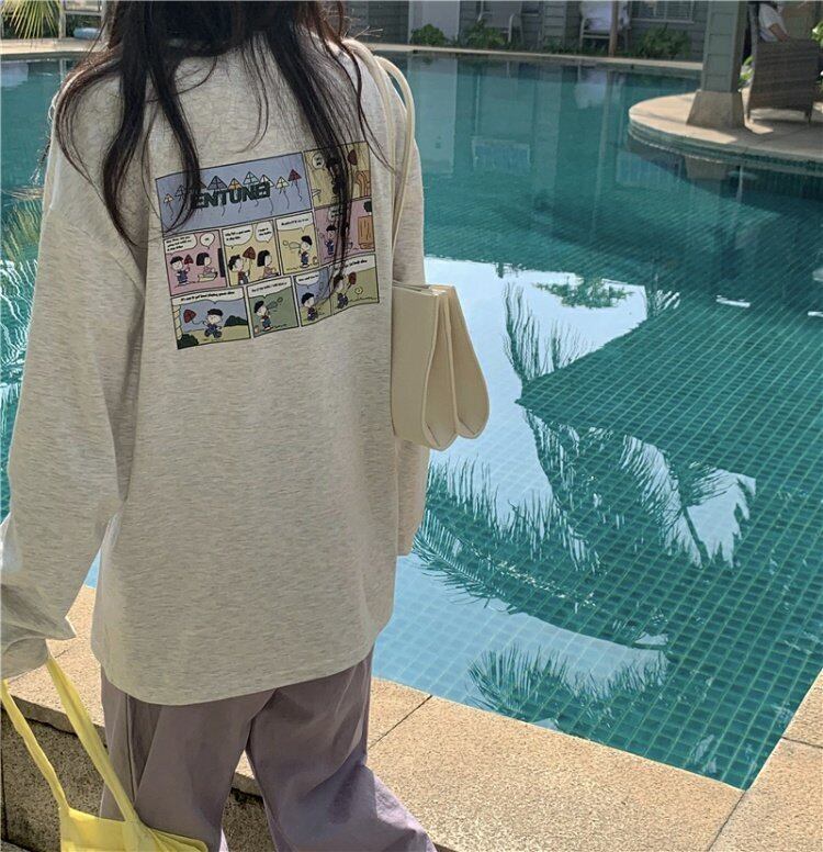 スタンダードTシャツシャツ スプリングプリントゆったりトップス ロング レトロ 春物 長袖 MONROE48088310968