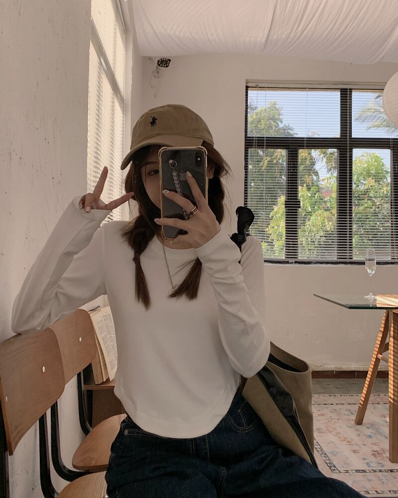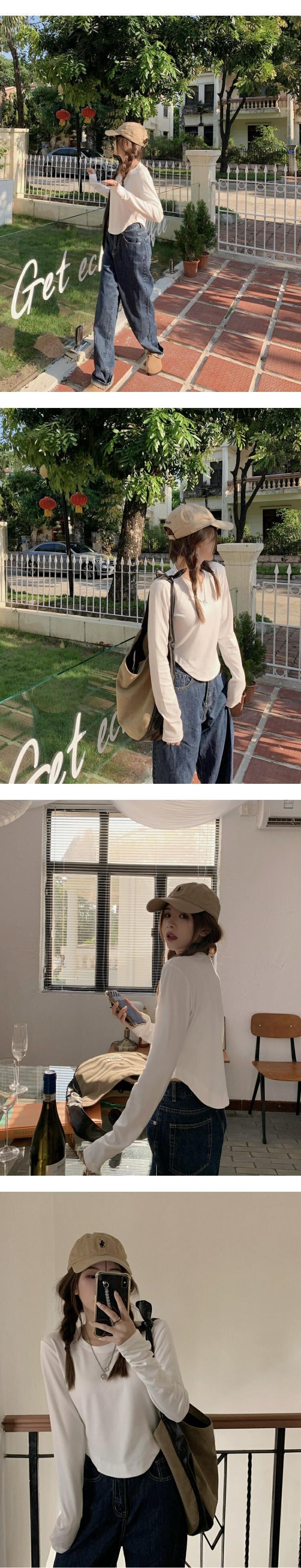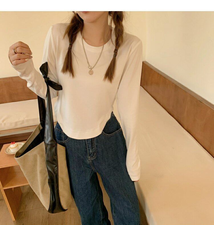 韓国ファッションホワイトショートスリムTシャツシャツ スプリング秋物プルオーバー ゆったりトップス ロング 春物 オータム スタイル 長袖 MONROE51998302187