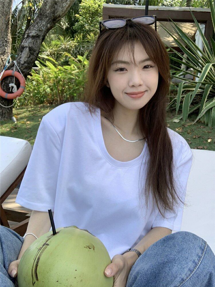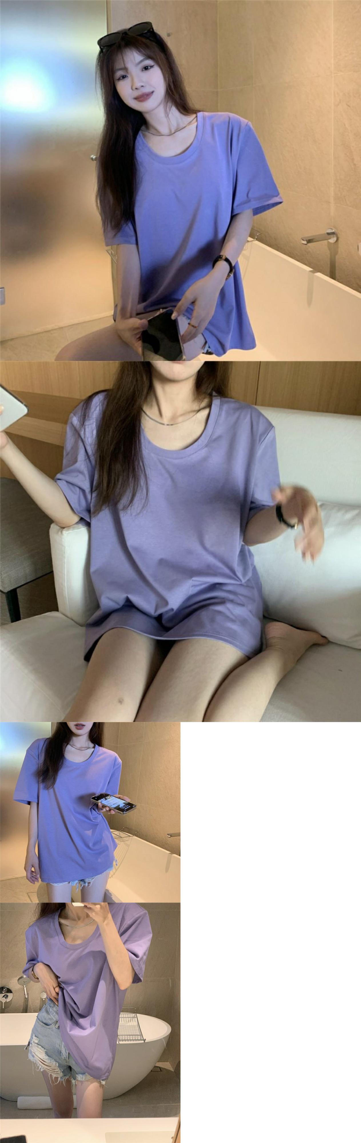 韓国ファッションTシャツスプリング夏服ルーズ薄手トップス ラウンドネックゆったりシャツ 春物 夏物 Oネック スタイル MONROE49474823824