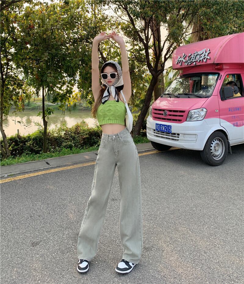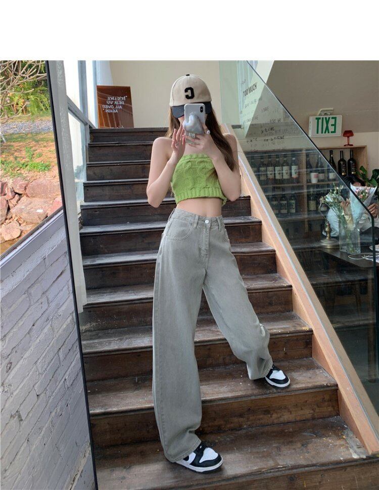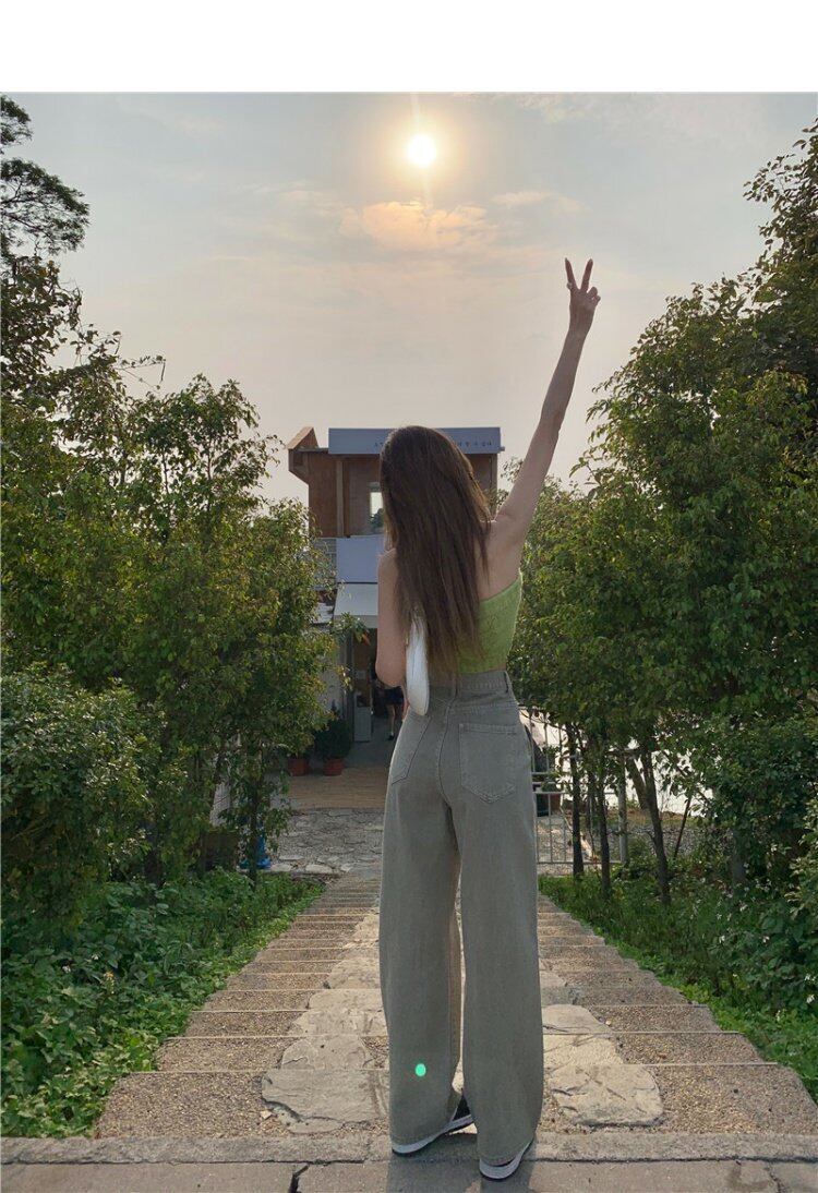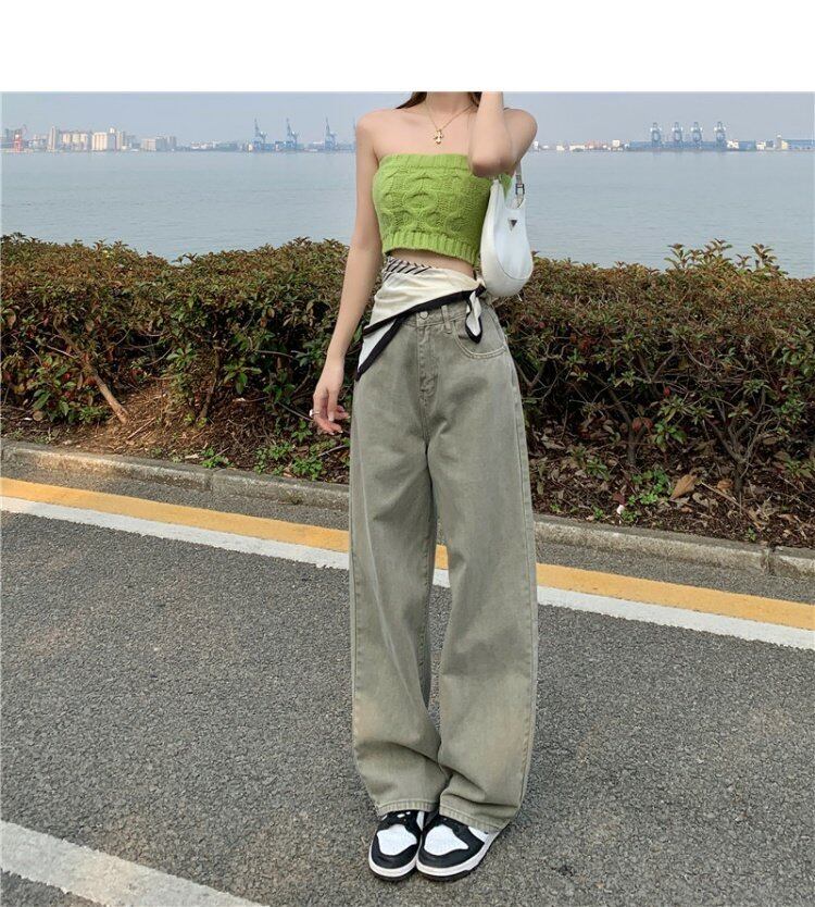 ジーンズ スプリングウェストワイドレッグパンツ 韓国ファッション ストリート 春物 ワイドパンツ ウエスト MONROE4299278974