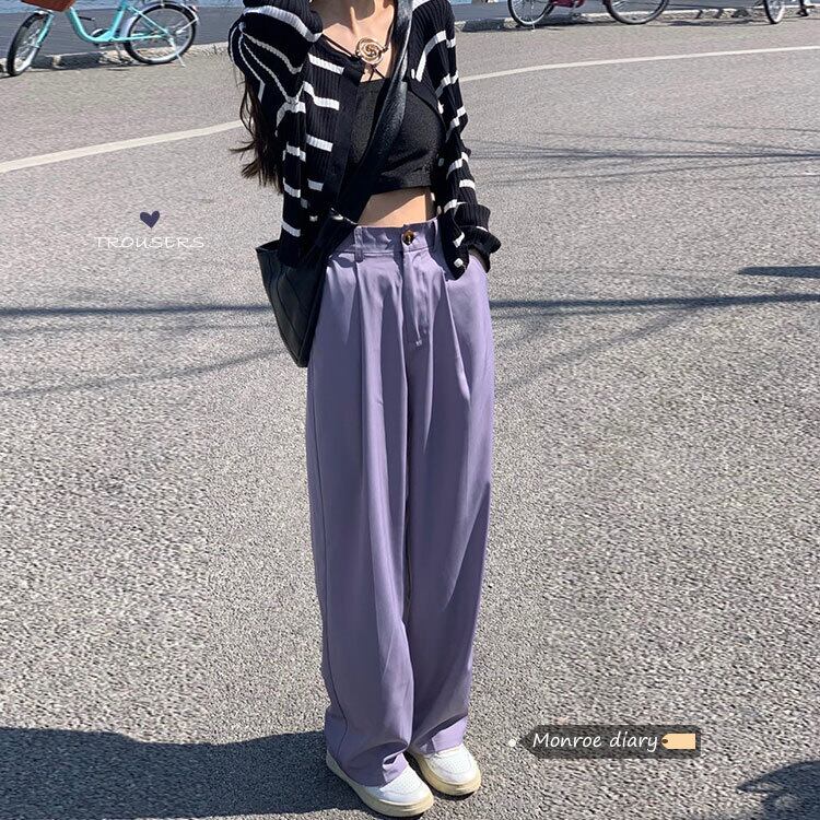 NEW薄手カジュアルパンツ ロングスプリング 春物 パープル MONROE14820894842
