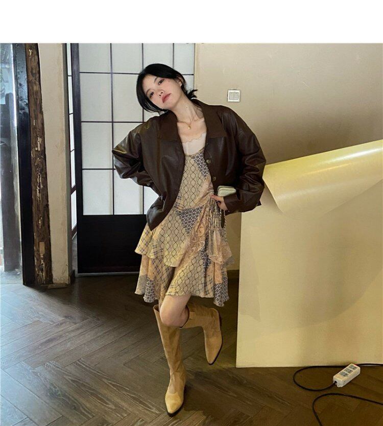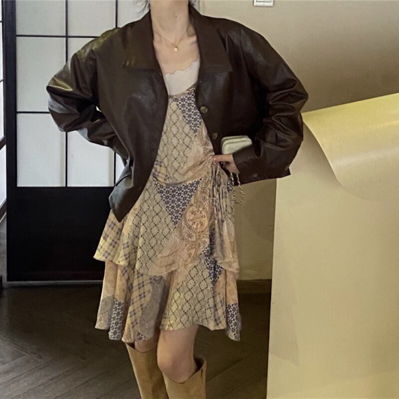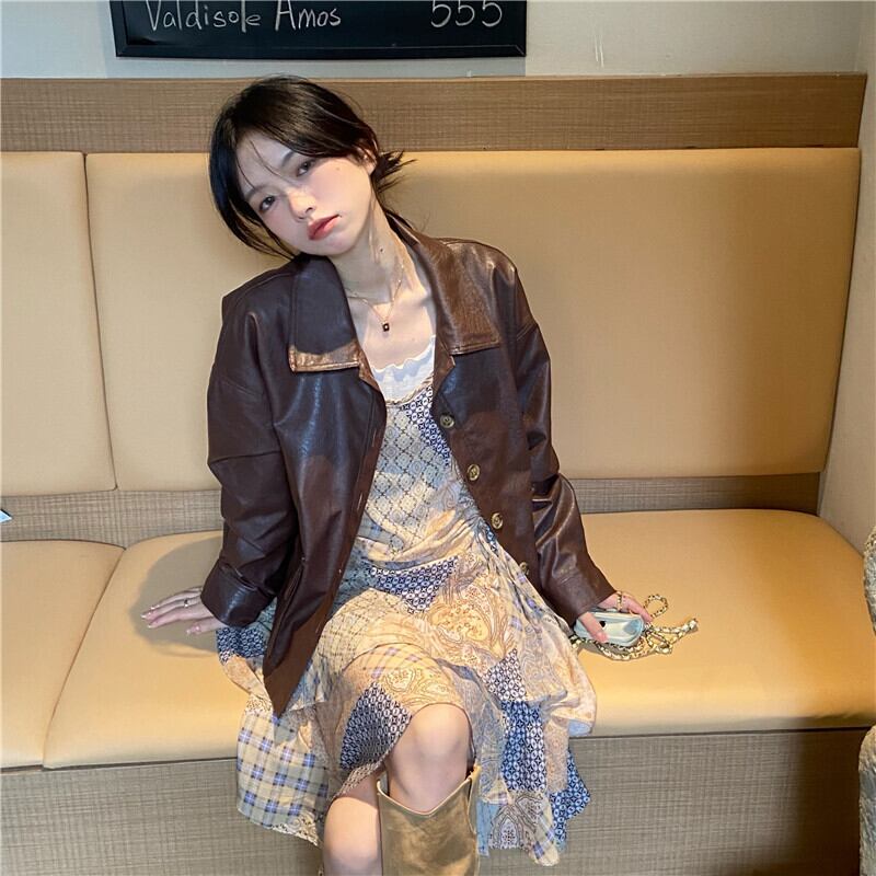 ブラウンレザージャケット スプリング秋物スタンダード レトロ ストリート 春物 オータム MONROE11624638912