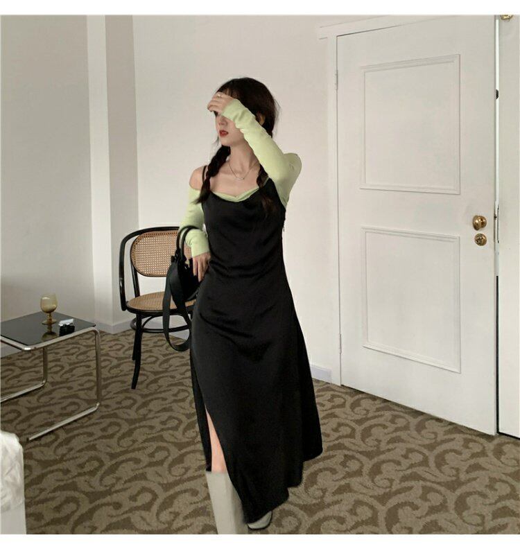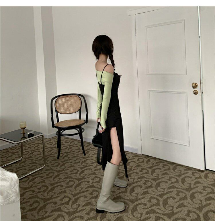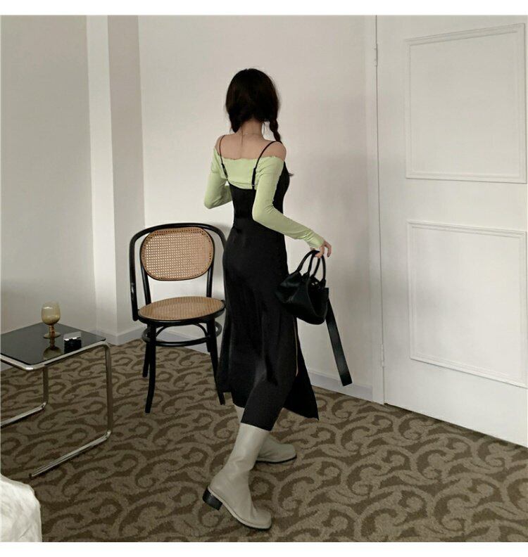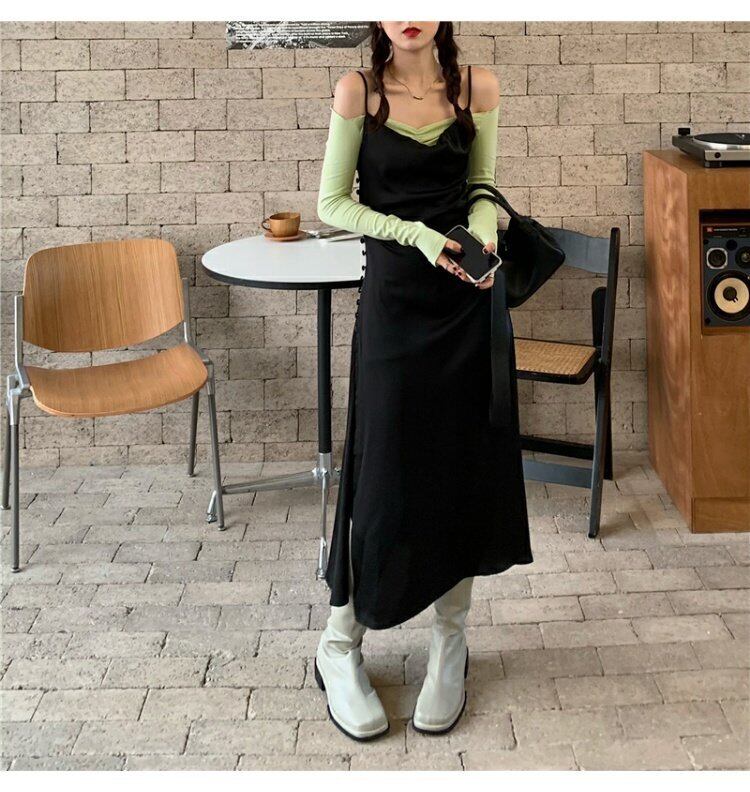 ブラックワンピーススプリング秋物スカート ストリート 春物 オータム ウエスト MONROE92140193581