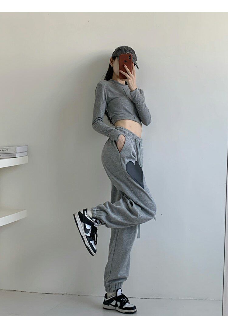 色:グレーのボトミングシャツ,コーヒー色のボトミングシャツ,グレーハートドローストリングパンツ,GrアーミーLoveドローストリングパンツ,グレーハートフリースパンツ,gr軍愛フリースパンツ