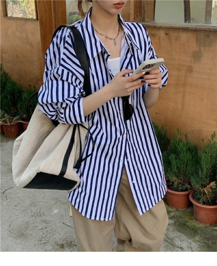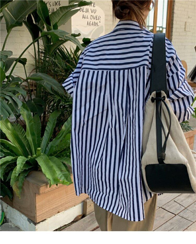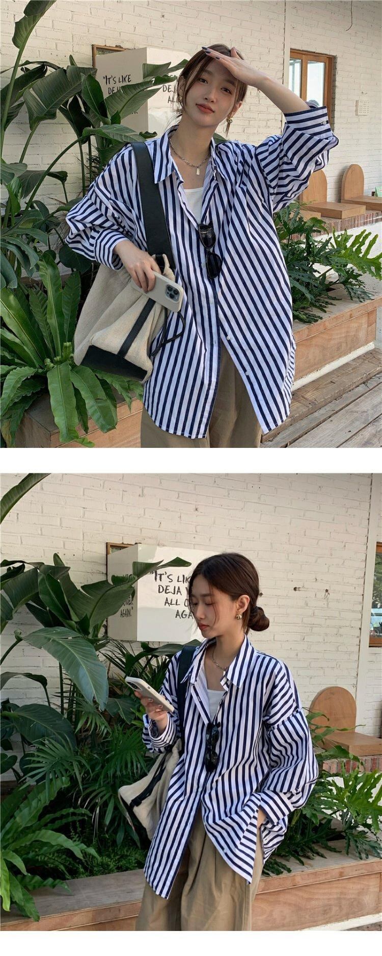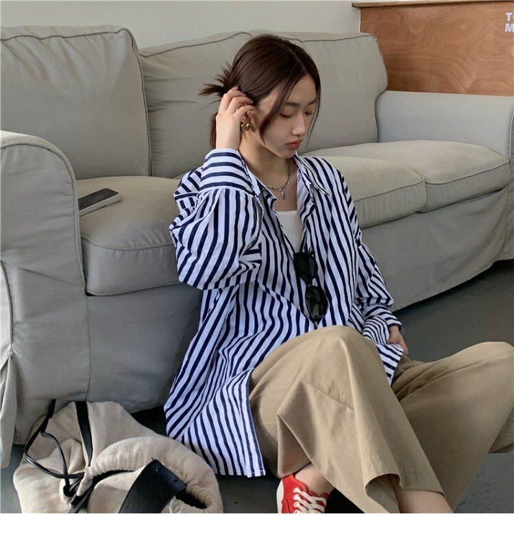 シャツ スプリングルーズストライプ長袖スリーブジャケット トップス ロング 春物 MONROE39621064116