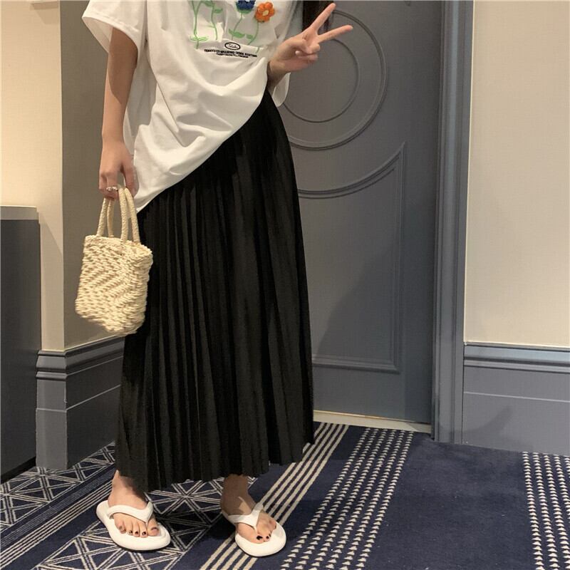 ソリッド カラープリーツスカート ロング夏服ルーズハイウェストウェスト薄手Aライン 夏物 ソリッドカラー ウエスト MONROE62182048960
