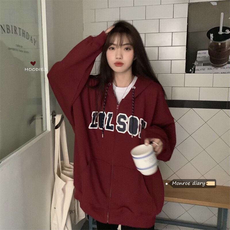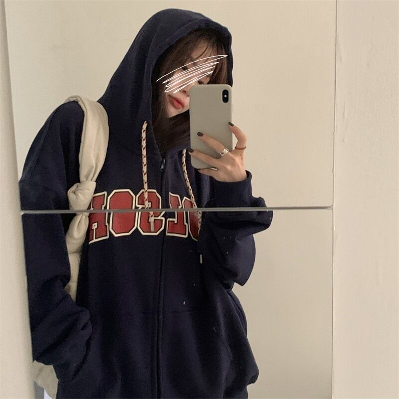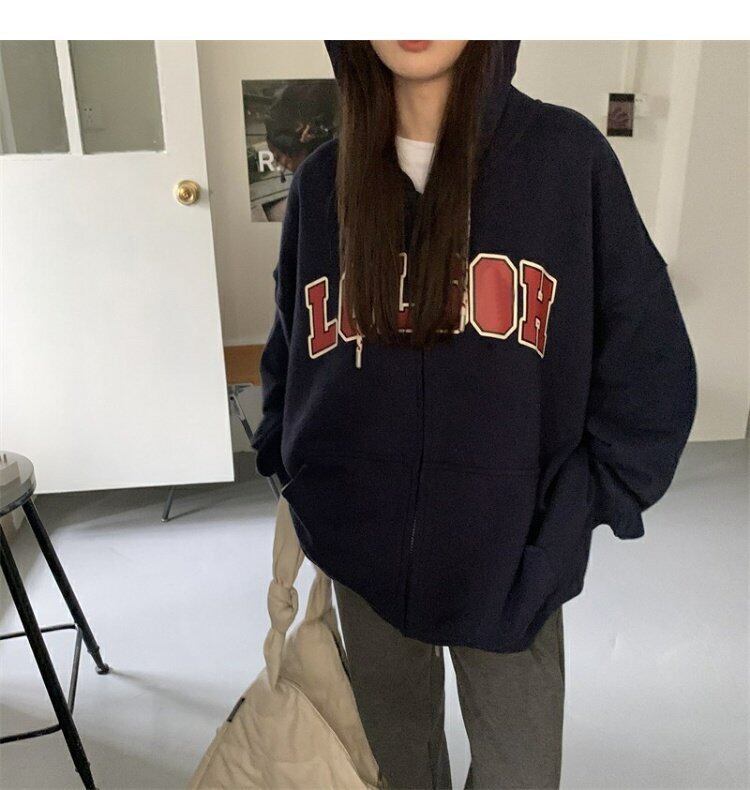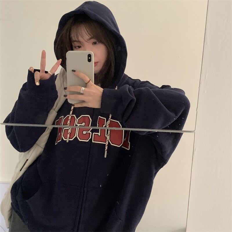 スタンダードフードセーター コート スプリング秋物ジッパートップス ロング レトロ 春物 オータム 長袖 ミドル丈 MONROE70151553942
