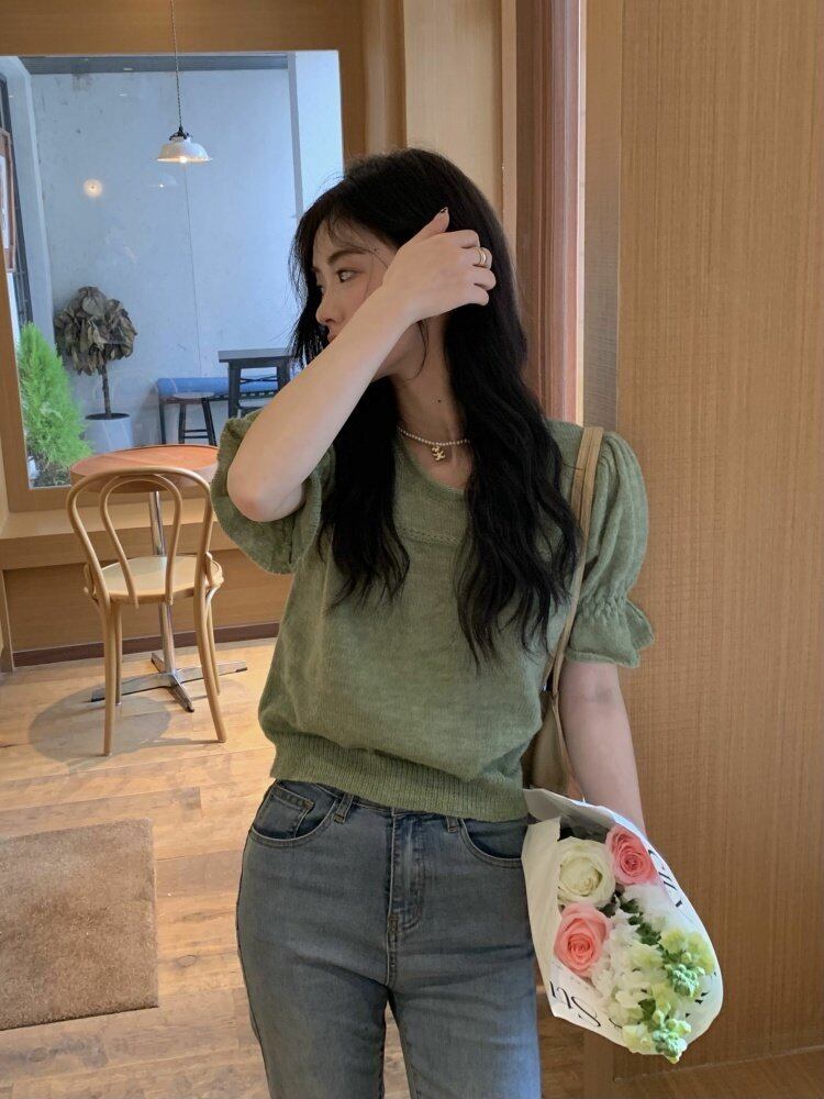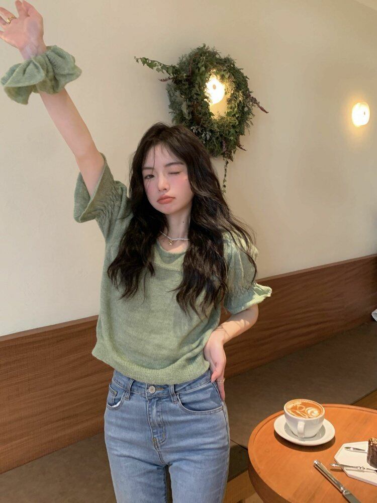 ニットスプリングショートスリムセーター スリーブトップス ゆったりシャツ 大人ガーリー スウィート キュート カジュアル 春物 MONROE83897848220