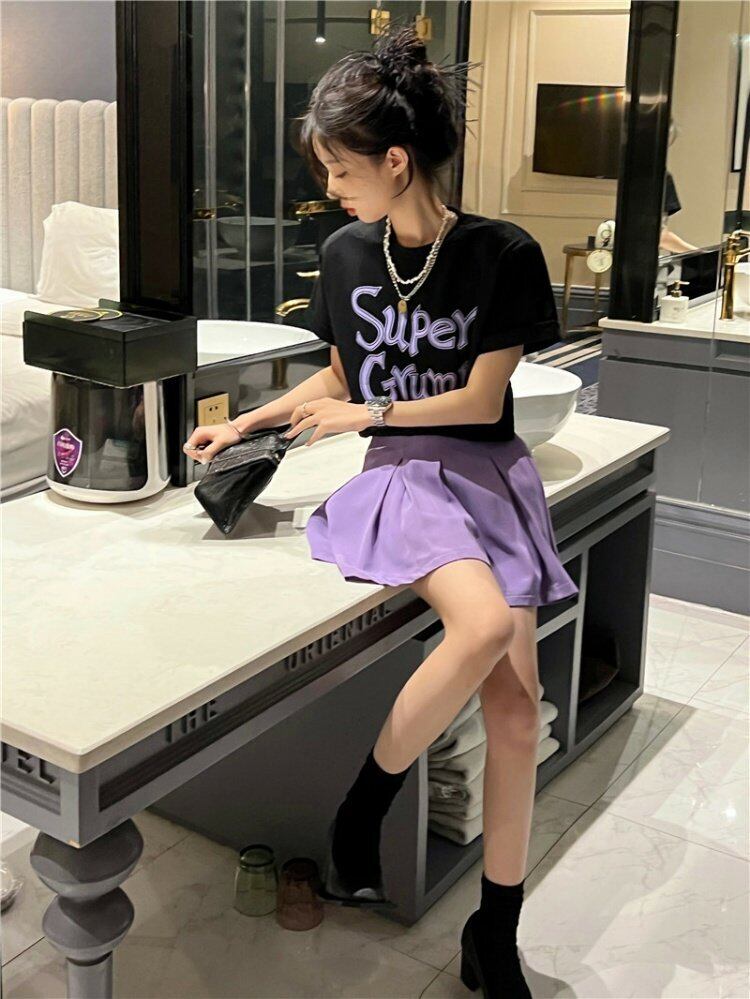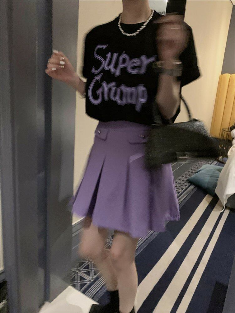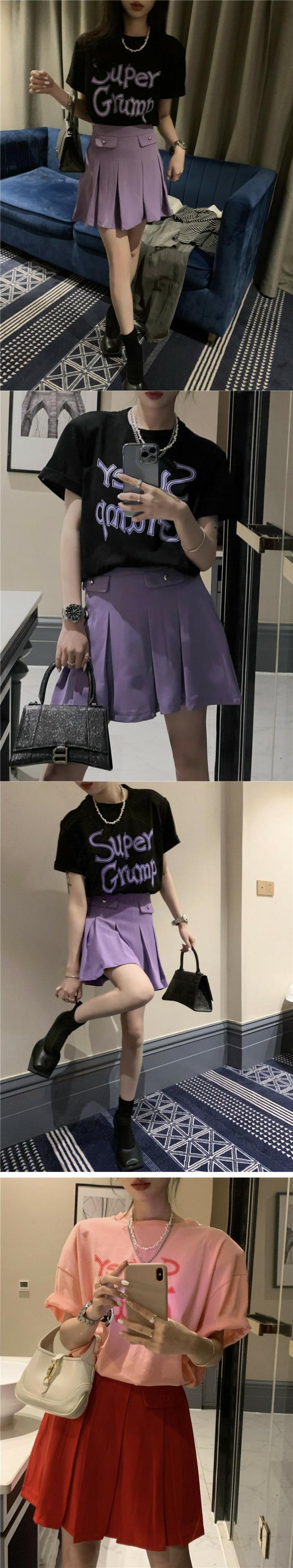色:パープルTEE,ホワイトティー,ピンクティー,赤プリーツスカート,ブラックプリーツスカート,紫プリーツスカート