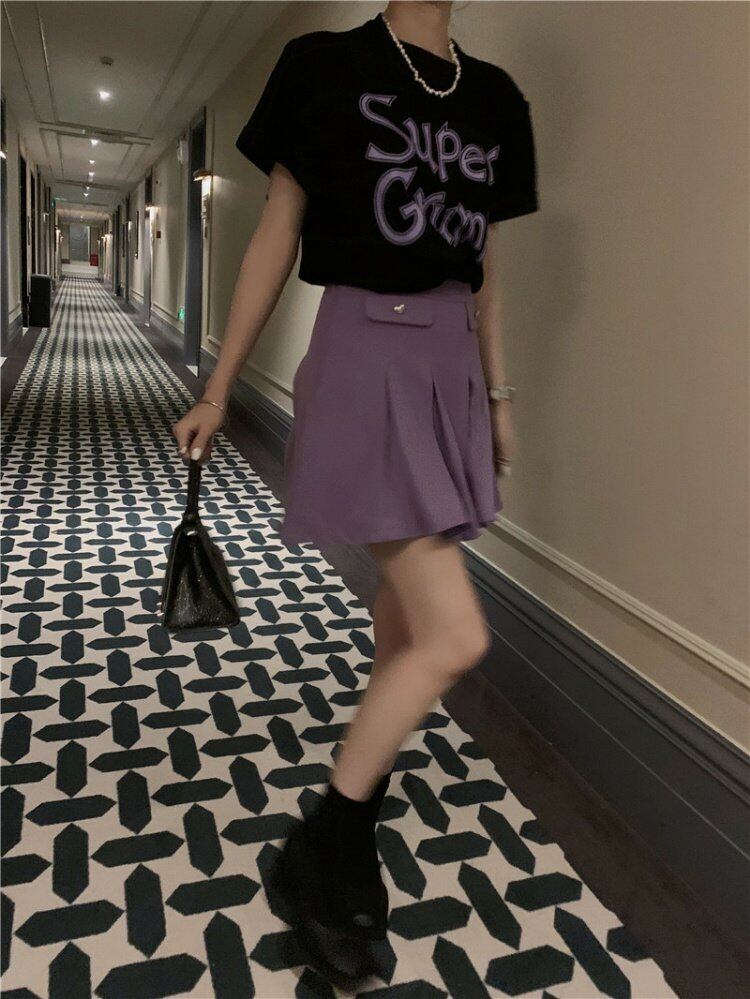 韓国ファッションプリーツスカート スプリングショート 春物 パープル スタイル MONROE96443812721