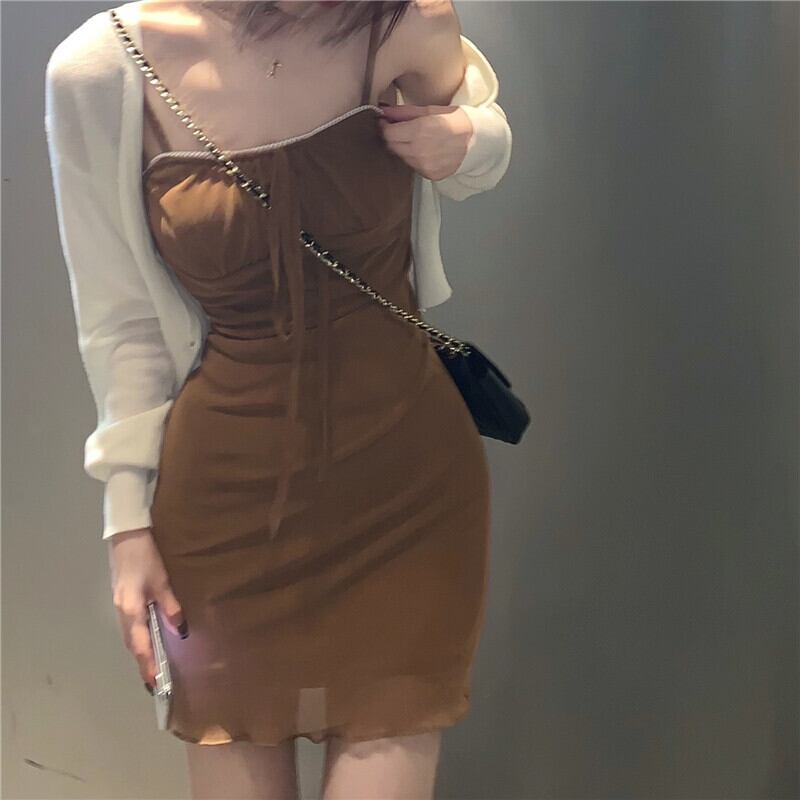 薄手コート ニットトップス ストレッチメッシュスリムフィットウェストワンピース エラスティック 伸縮 ウエスト MONROE98027185204