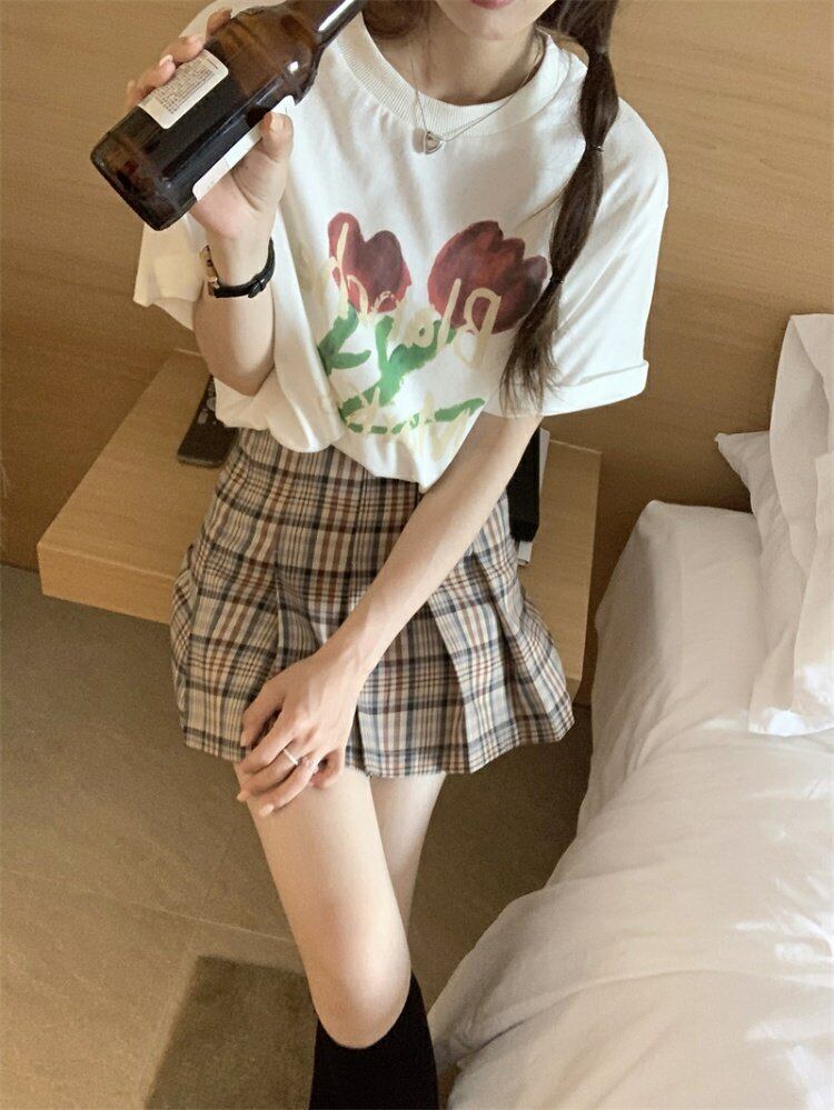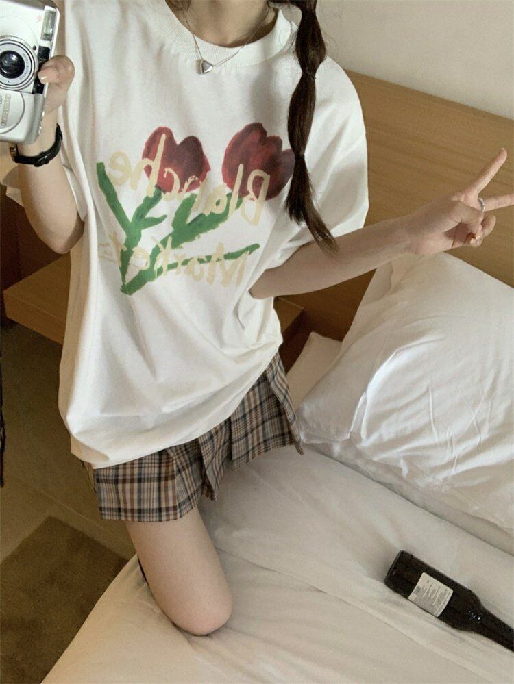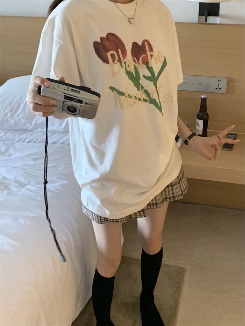 プリント柄Tシャツシャツ スプリングルーズ薄手ゆったり半袖スリーブトップス ショート ハーフスリーブ 春物 MONROE51701959702