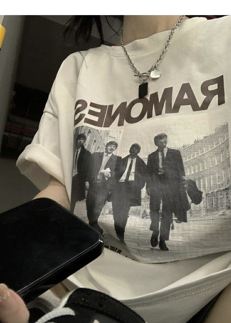 スタイルTシャツシャツ スプリングプリントルーズ薄手トップス ラウンドネックゆったり 原宿 春物 Oネック MONROE13903191886