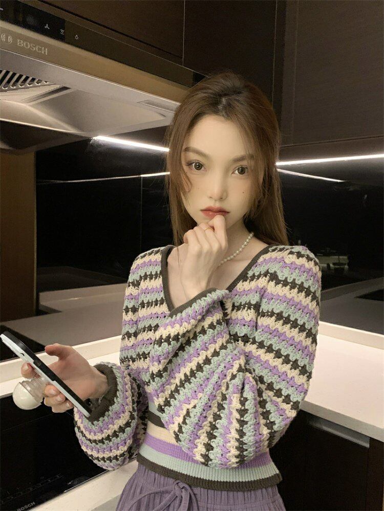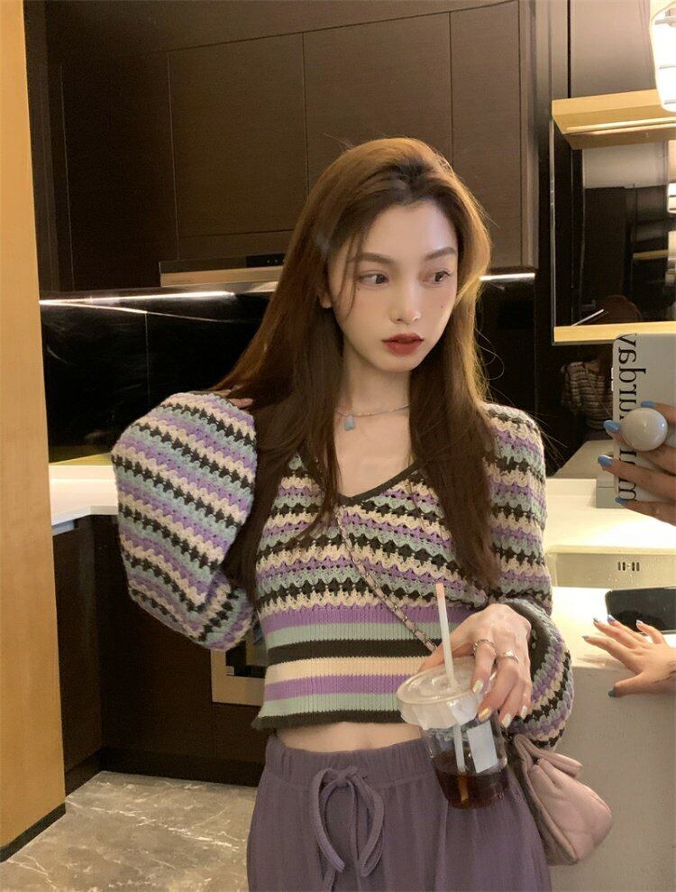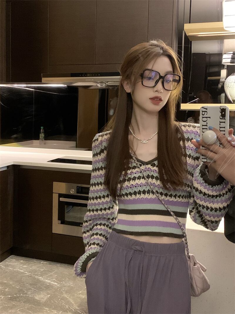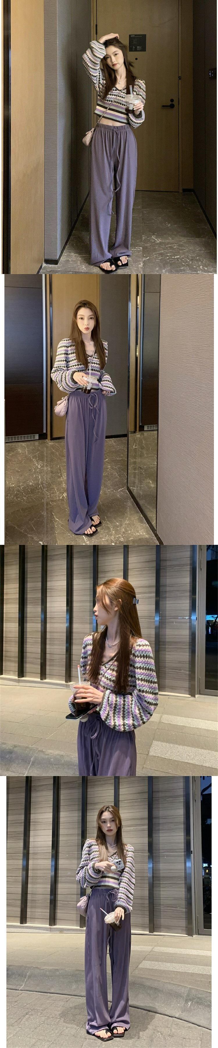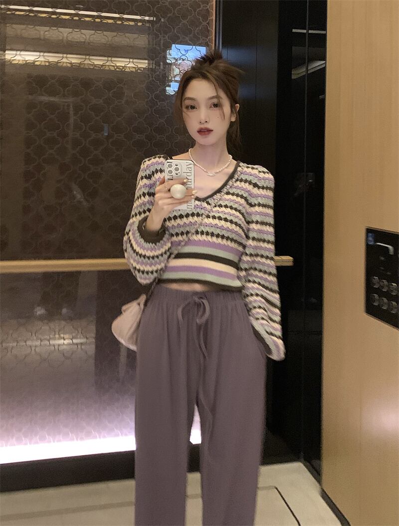 韓国ファッションスタンダードスタイルレディーススプリングニットトップス カジュアルパンツ セット レトロ 春物 MONROE83834922791
