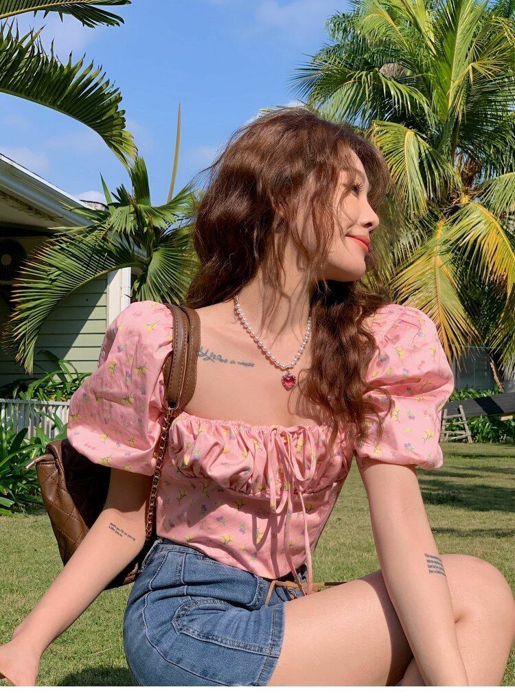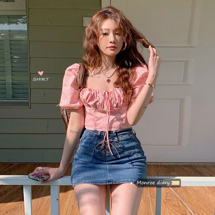 韓国ファッションフローラルショートシャツ ジャケット スプリングスリムトップス 春物 花柄 スタイル MONROE21851973914