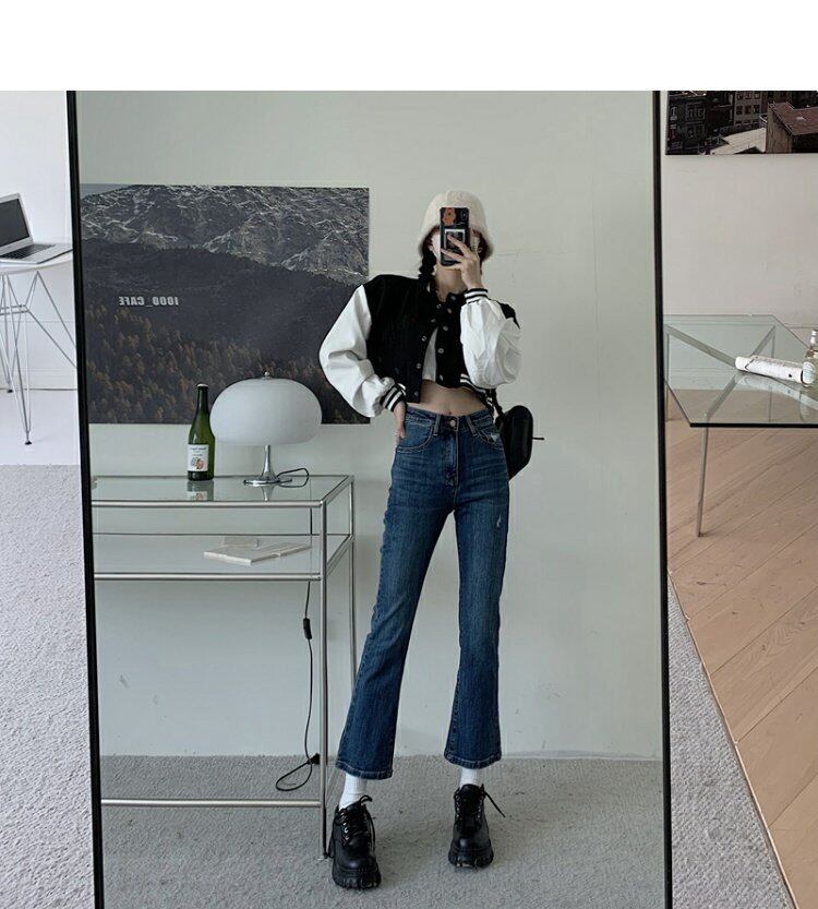 ジーンズ スリムパンツ ストレッチハイウェスト夏服スタンダード レトロ エラスティック 伸縮 夏物 ウエスト MONROE86796912680