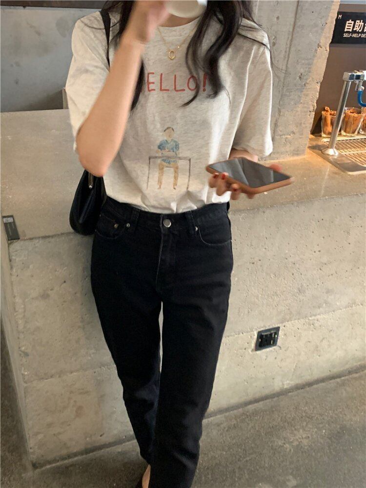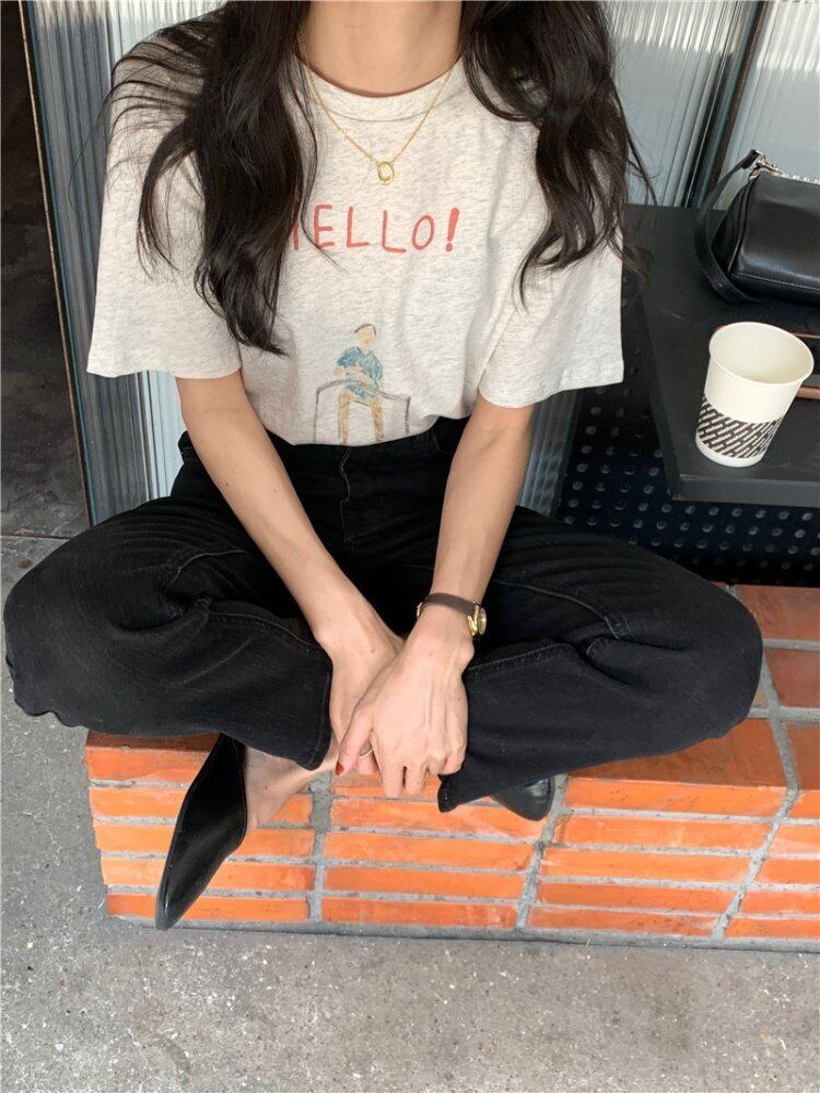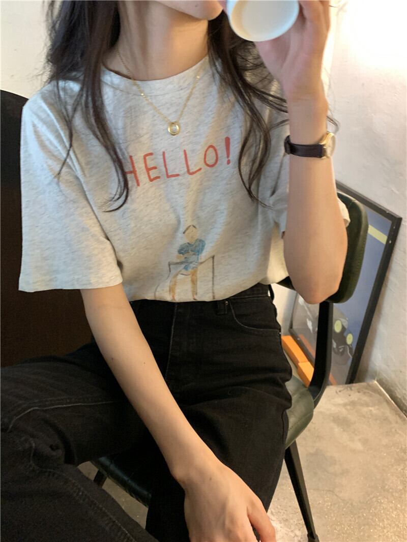 韓国ファッションラウンドネックプリントTシャツ夏服ルーズ薄手トップス カジュアルゆったりシャツ 夏物 Oネック スタイル MONROE92008467019