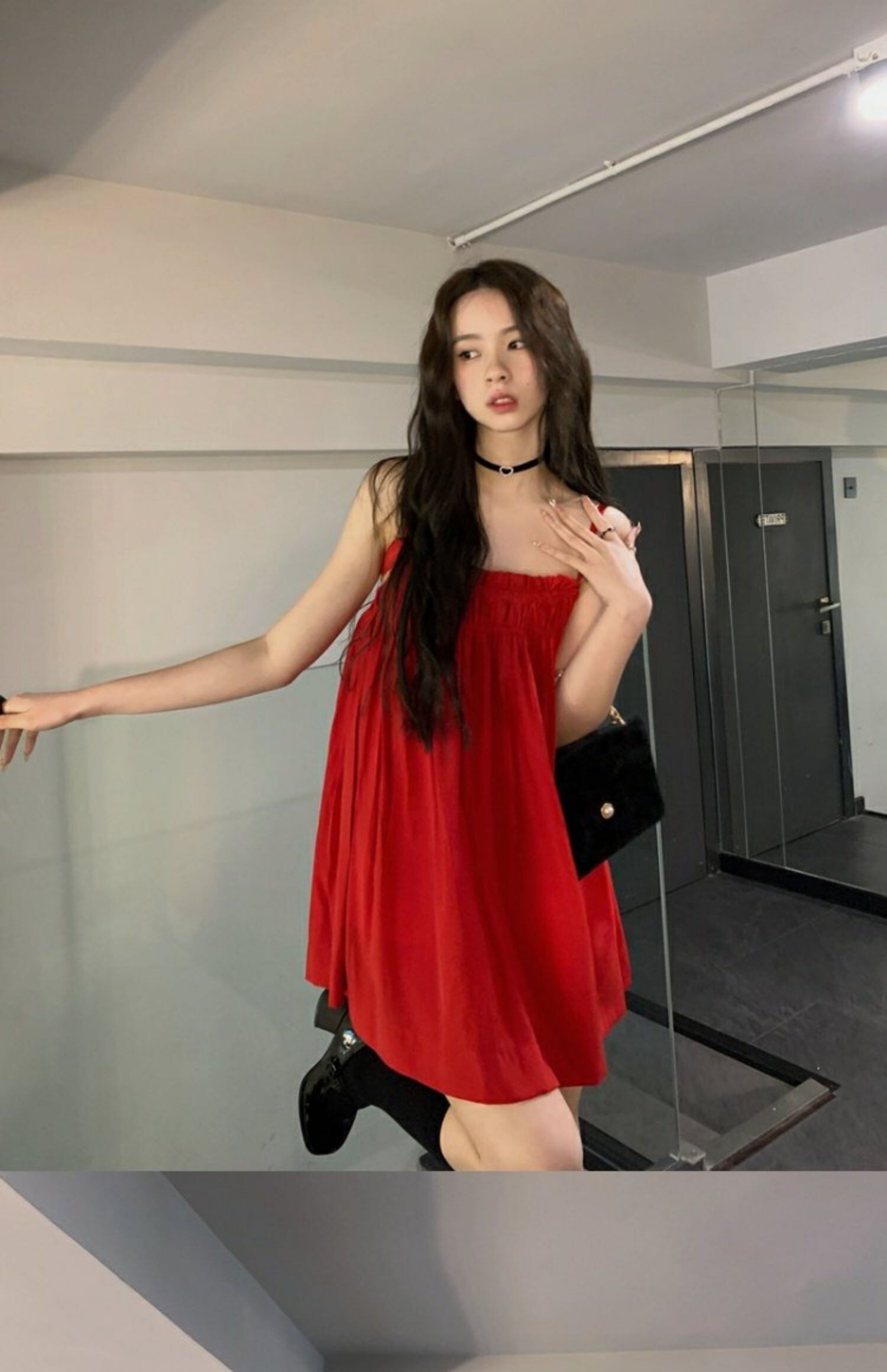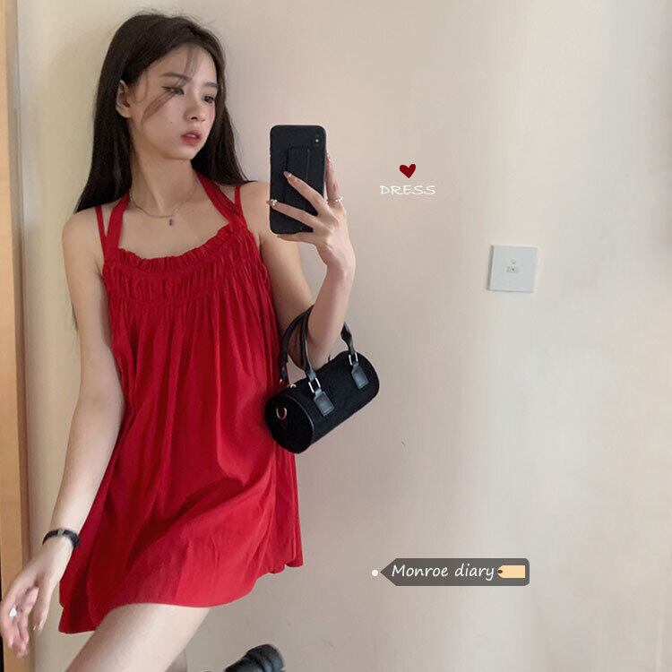 ホルターワンピースレディースレッドショートスカート スプリングバックレスルーズ ストリート 春物 MONROE81315745536