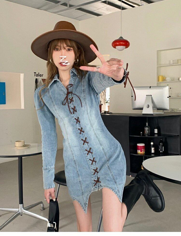 ワンピーススプリングウェスト薄手スカート Vネック 春物 ウエスト MONROE53182196394