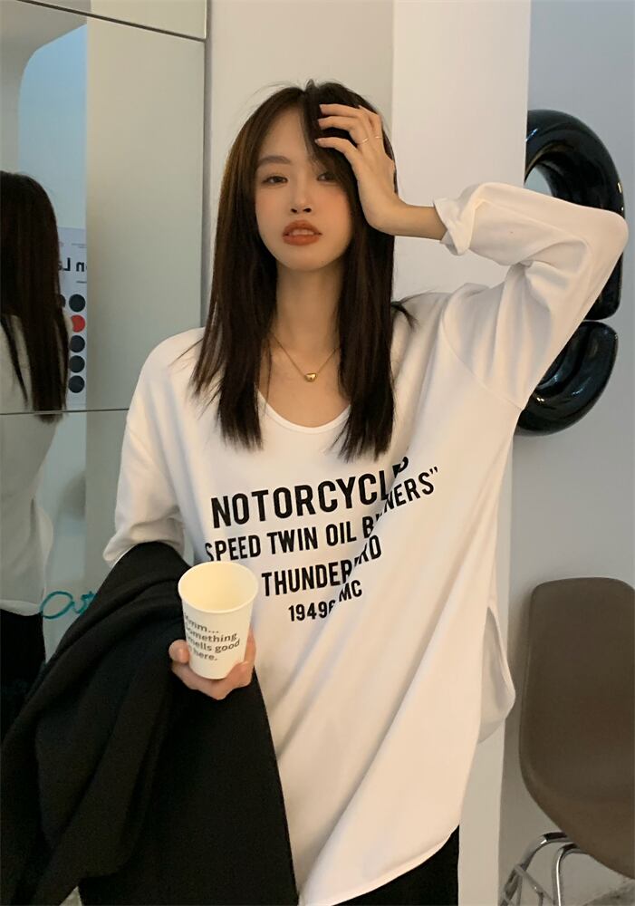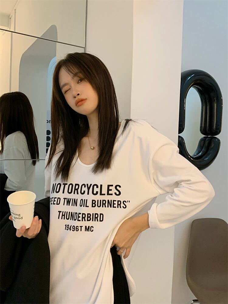 NEWプリントTシャツシャツ ルーズカジュアルゆったりスプリング秋物プルオーバー トップス ロング 春物 オータム 長袖 MONROE78205256907