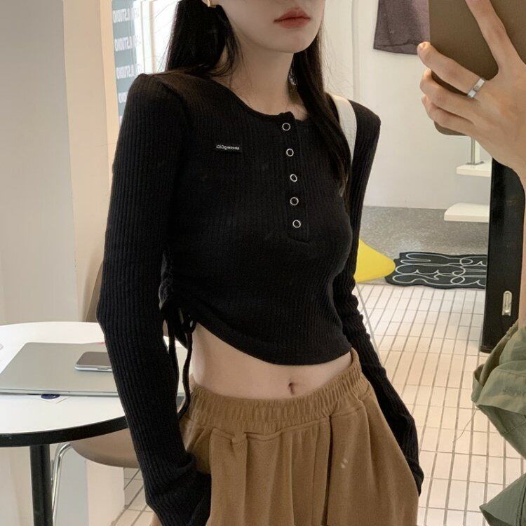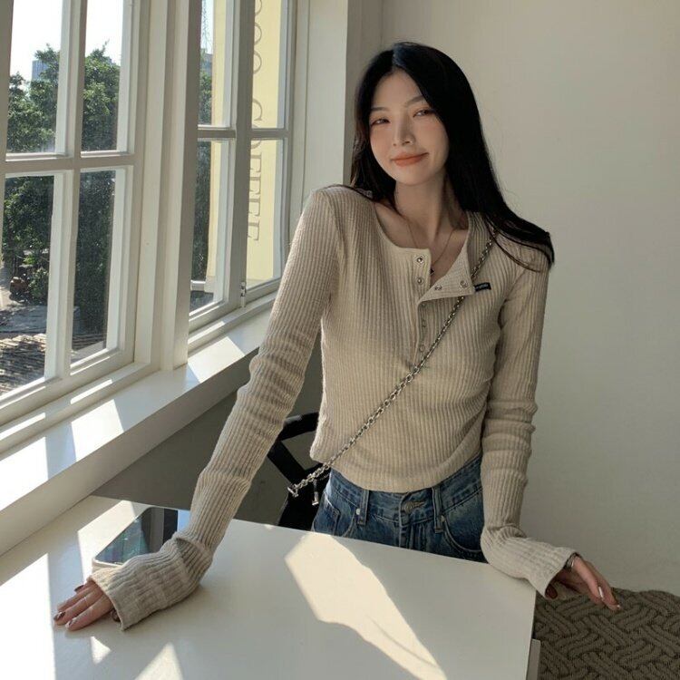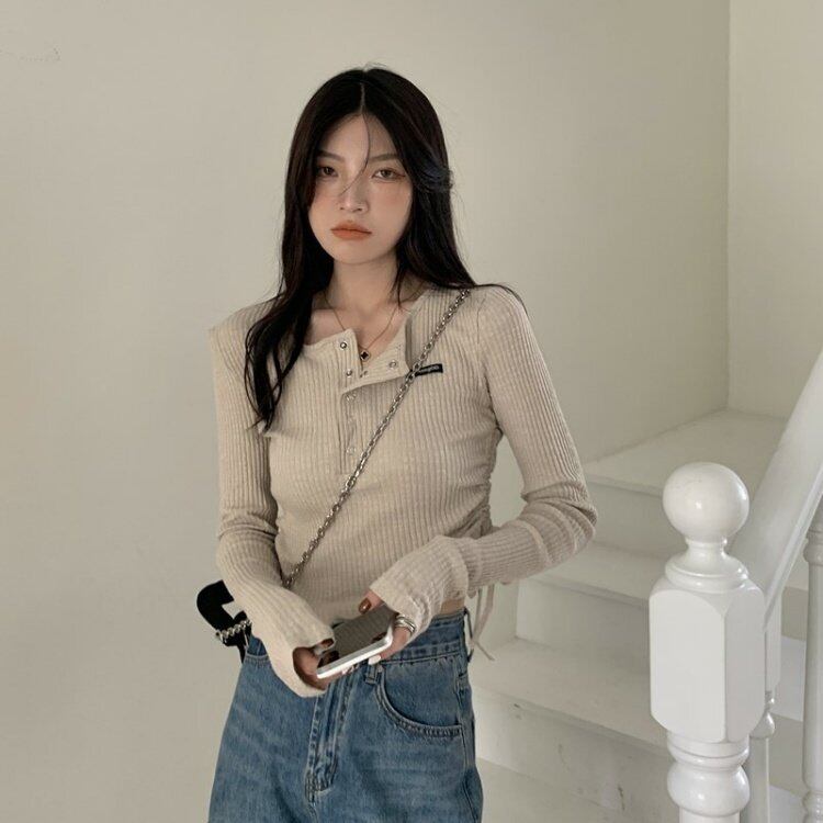 韓国ファッションスリムフィットTシャツシャツ ゆったりスプリングスタンダードトップス ロング レトロ ストリート 春物 スタイル 長袖 MONROE52910378556