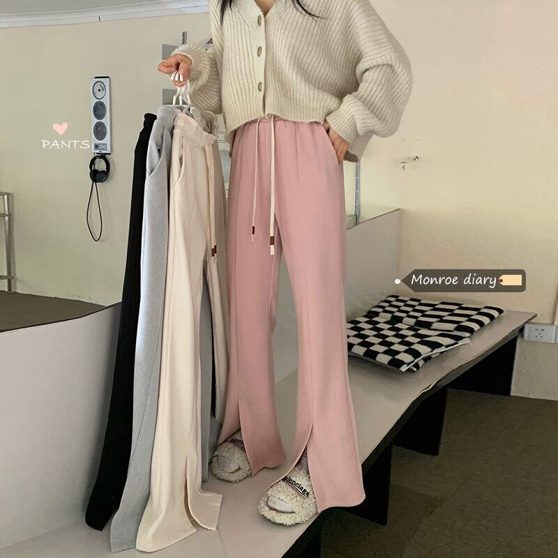 パンツ スプリング秋物スリットルーズカジュアル ピンク 春物 オータム MONROE93777987484