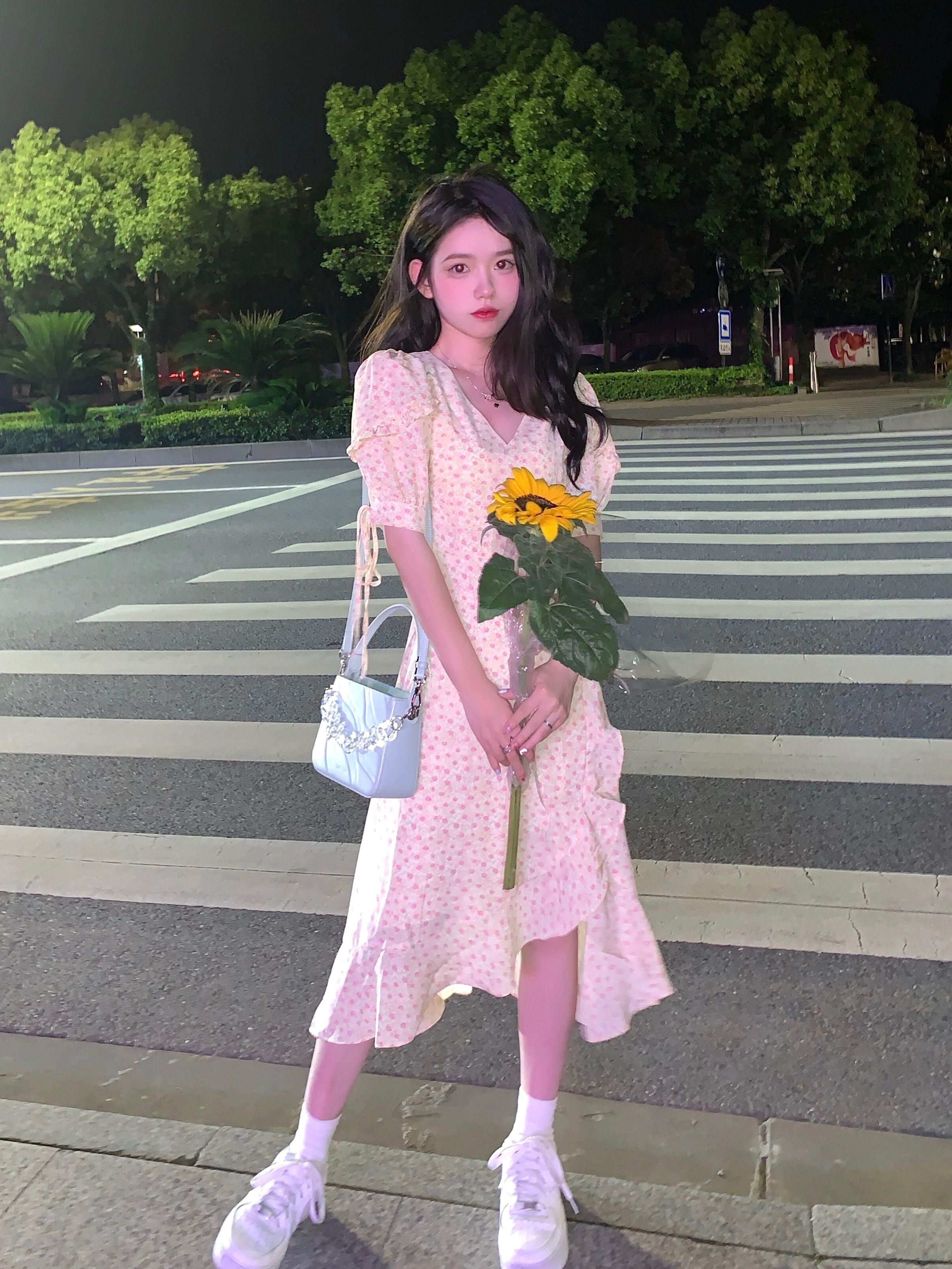 ウェストワンピーススプリング薄手フローラルVネックロングスカート NEW 大人ガーリー スウィート キュート カジュアル 春物 花柄 ウエスト MONROE58334889094