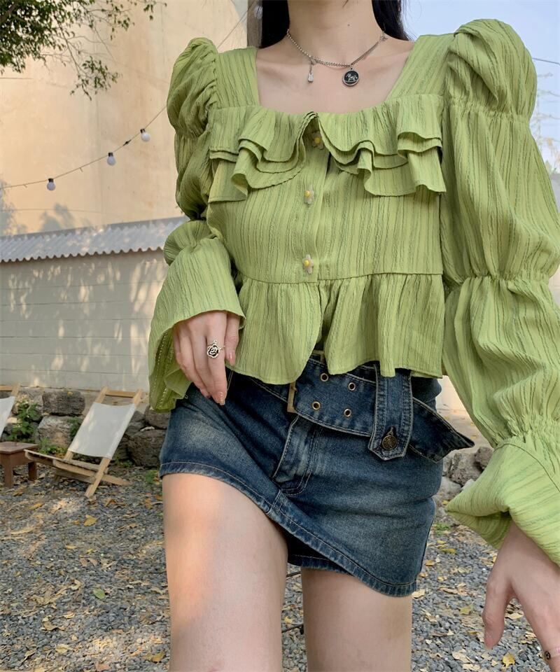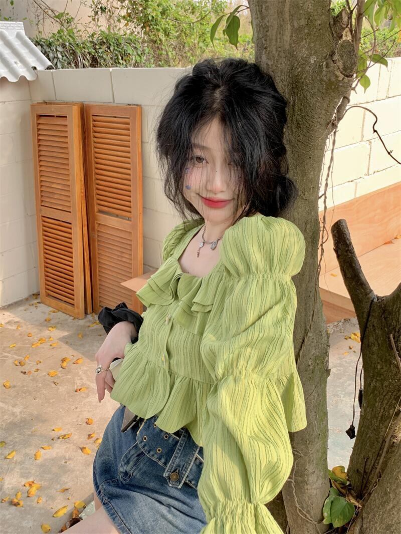 グリーンシャツ トップス スプリングショート長袖スリーブ ロング 春物 MONROE29802956439