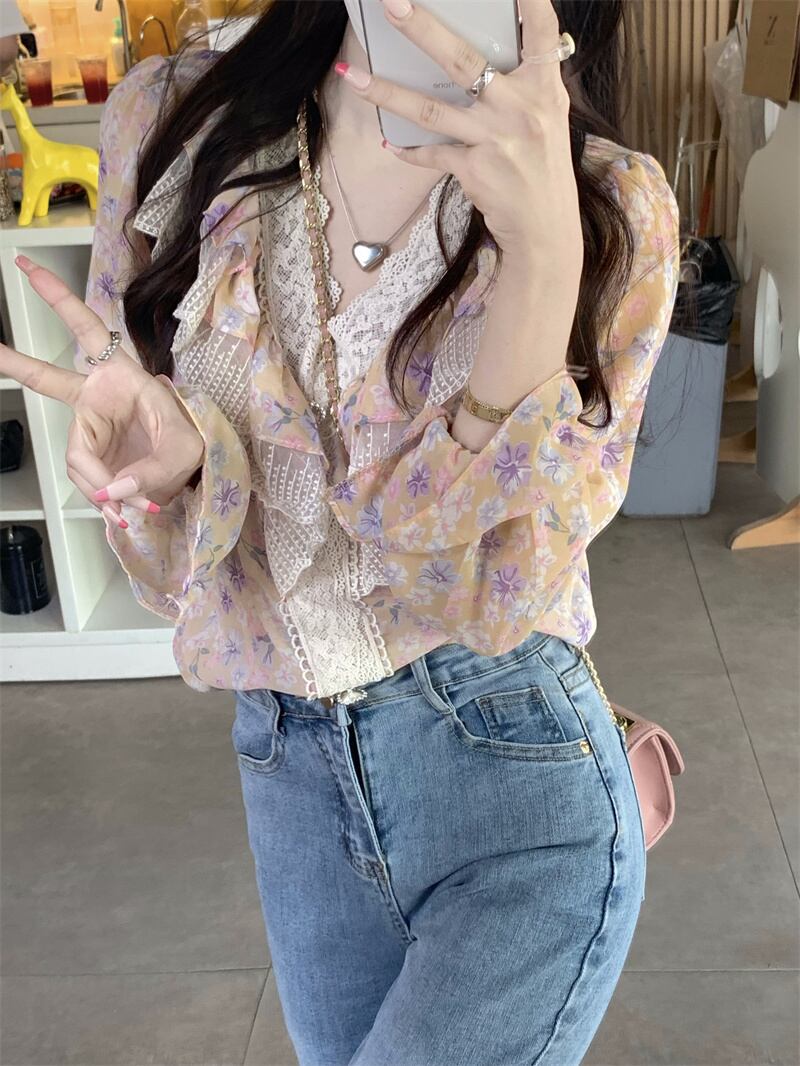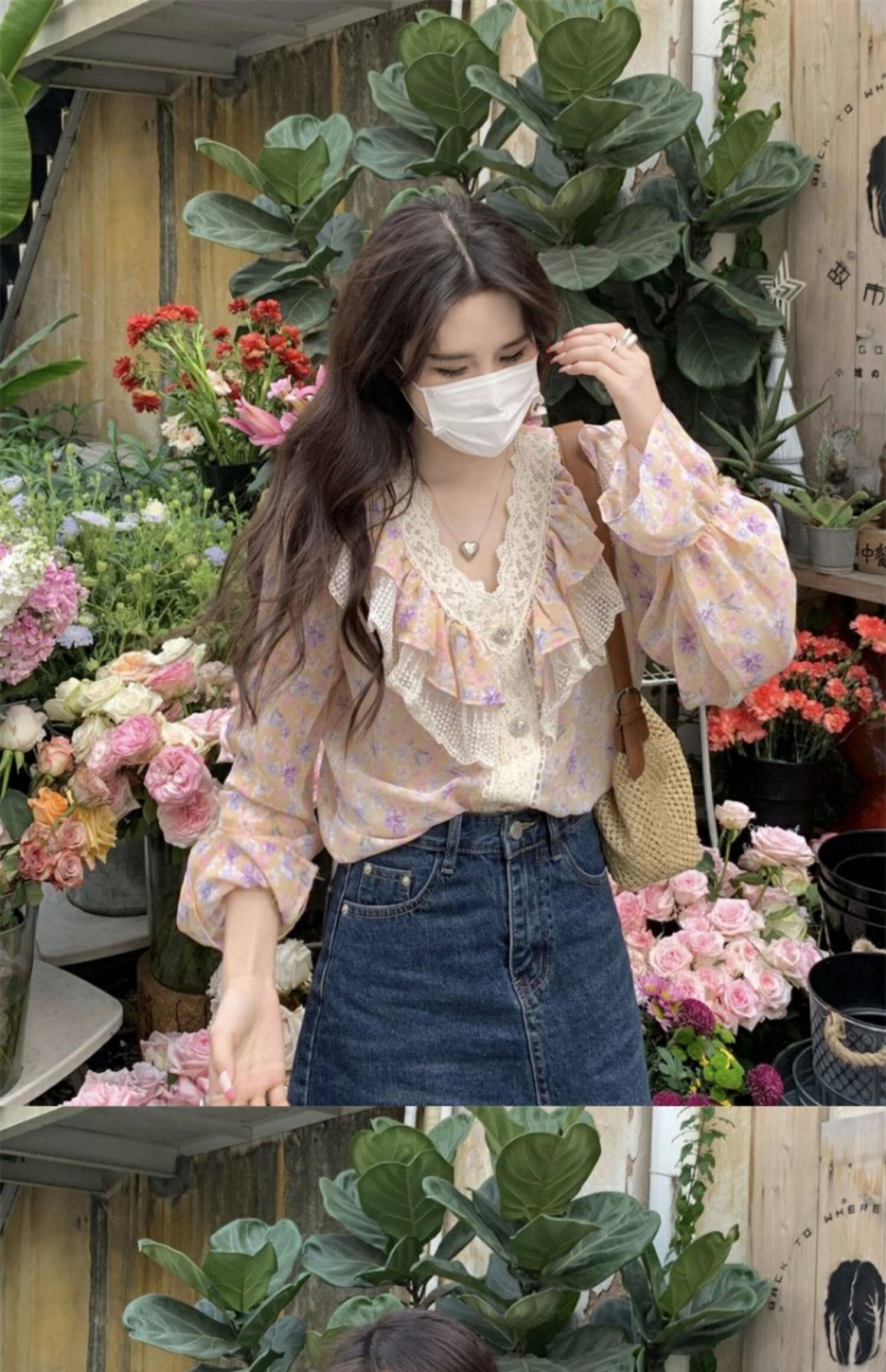 シャツ スプリングVネックトップス 大人ガーリー スウィート キュート カジュアル 春物 MONROE46656388012
