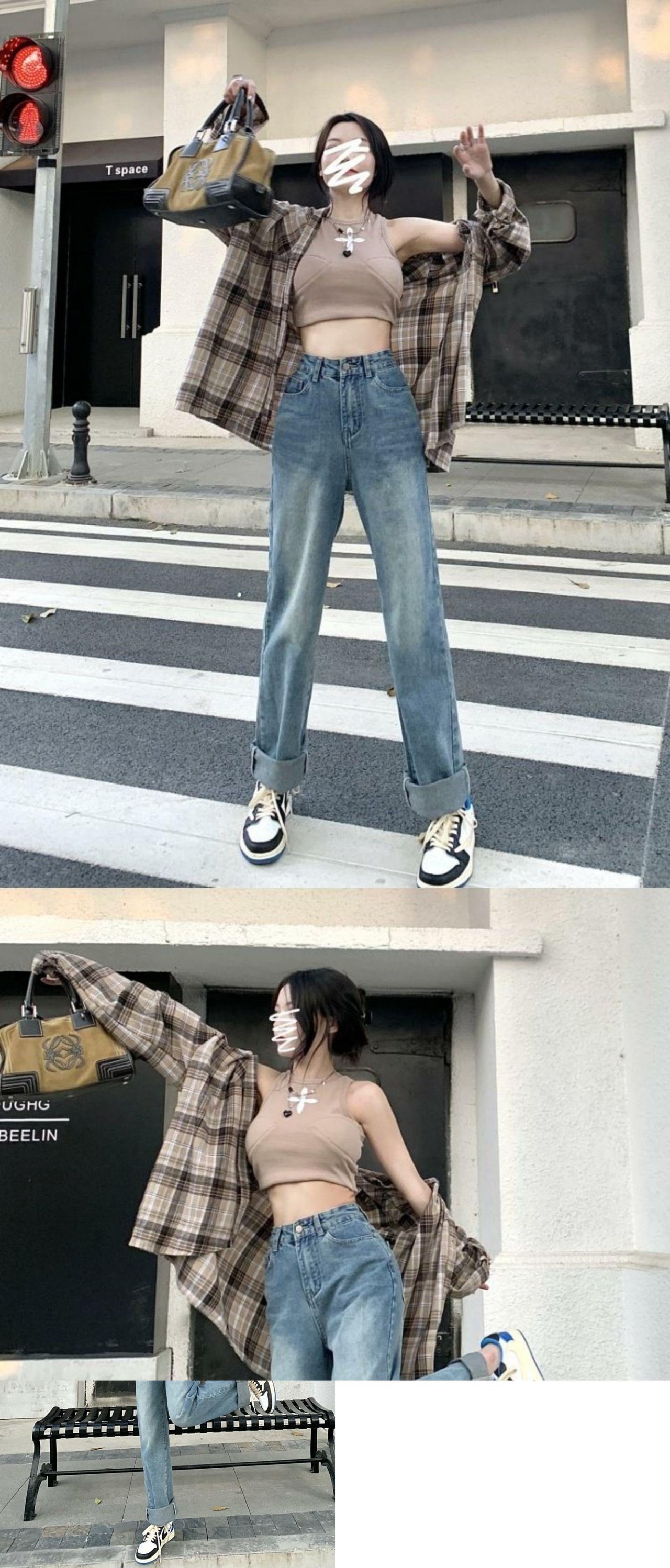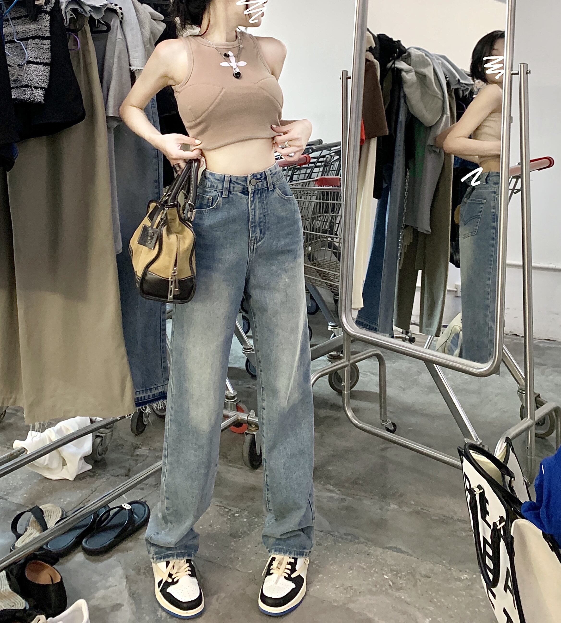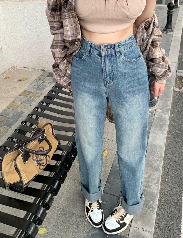 スタンダードジーンズ スプリングルーズブルーハイウェストパンツ レトロ 春物 ウエスト MONROE29866603191